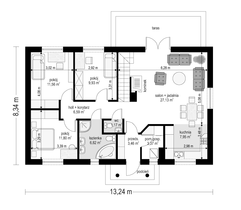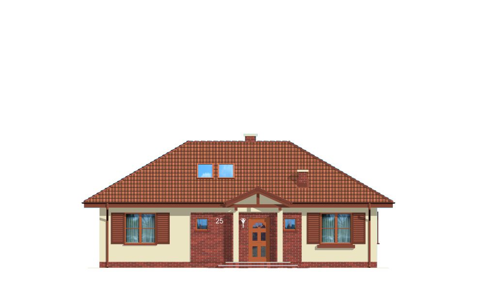 Projekt domu Dominik to elegancki, nieduży dom jednorodzinny dla rodziny nawet 7-osobowej. Kopertowy dach, ozdobny portyk wejściowy i okładziny klinkierowe tworzą udane połączenie. Wnętrze domu - przy niewielkiej powierzchni udało się pomieścić salon oraz pięć pokoi - rzecz niespotykana w małych domach. Dom Dominik został zaprojektowany w taki sposób, aby poddasze można wykończyć w drugim etapie budowy. Pracownia dysponuje także wersją projektu Dominik w odbiciu lustrzanym. Zapraszamy do zapoznania się z pełną ofertą pracowni MG Projekt: Dominik 2.