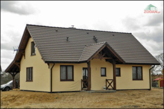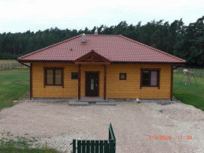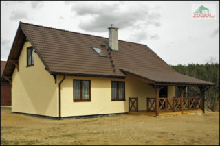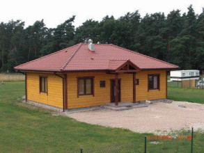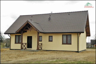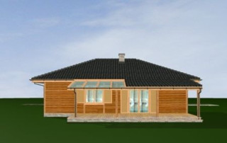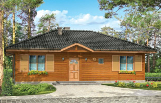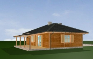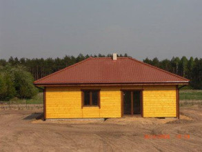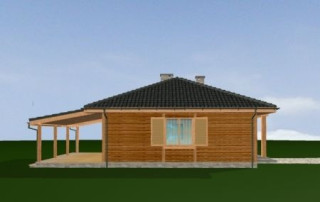 Projekt domu Dudek to dom parterowy z bali litych, mogącego służyć jako całoroczne mieszkanie dla rodziny 4- 5-osobowej, jak i jako dom letniskowy. Konstrukcja sumikowo-łątkowa z litych bali została od wewnątrz ocieplona wełną mineralną, więc budynek spełnia wszelkie normy cieplne. Sam dom, oprócz salonu z kominkiem i trzech sypialni z łazienką ma duży zadaszony taras, który może być częściowo przeszklony. W pomieszczeniu gospodarczym przewidziano kocioł c.o. Projekt domu Dudek dostępny jest także w wersji odbicia lustrzanego. Zapraszamy!