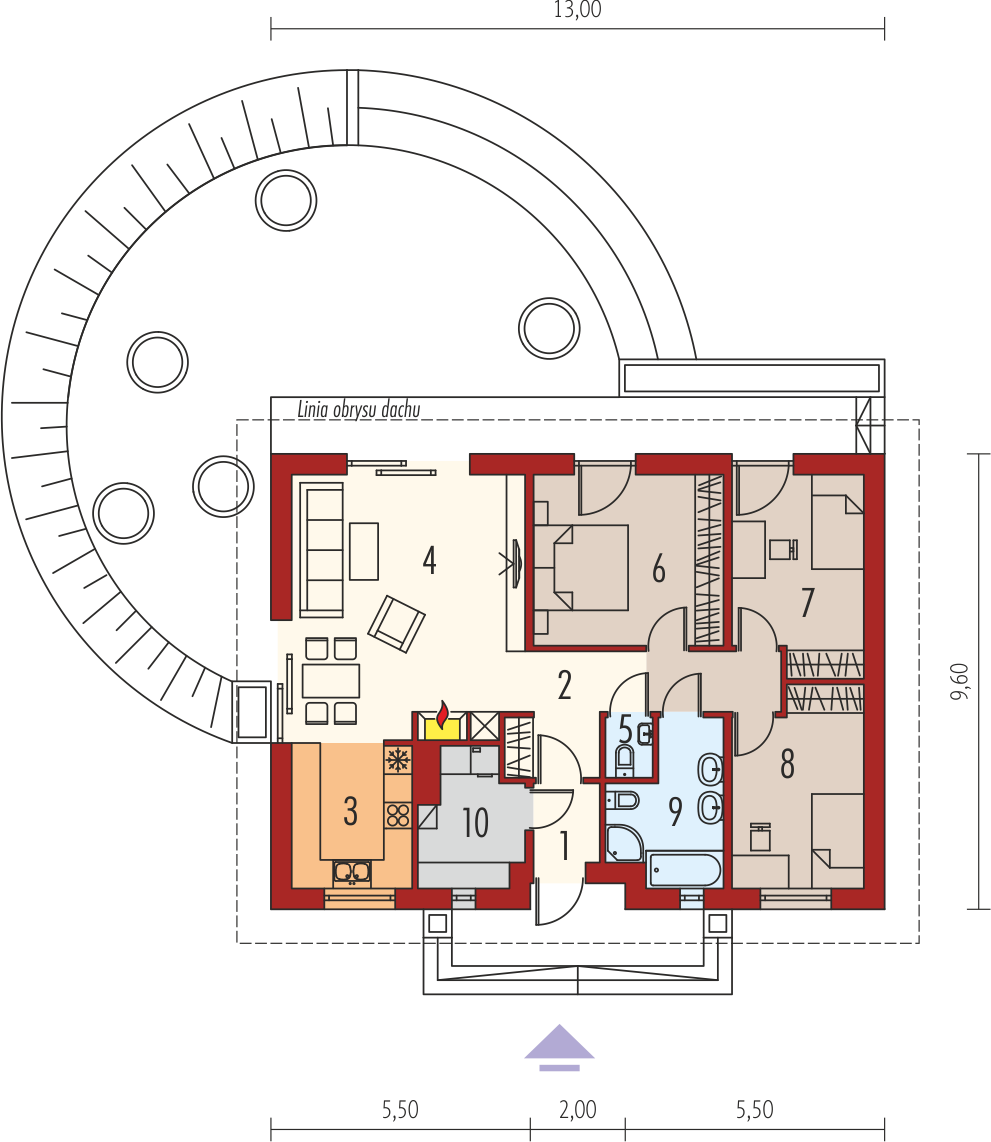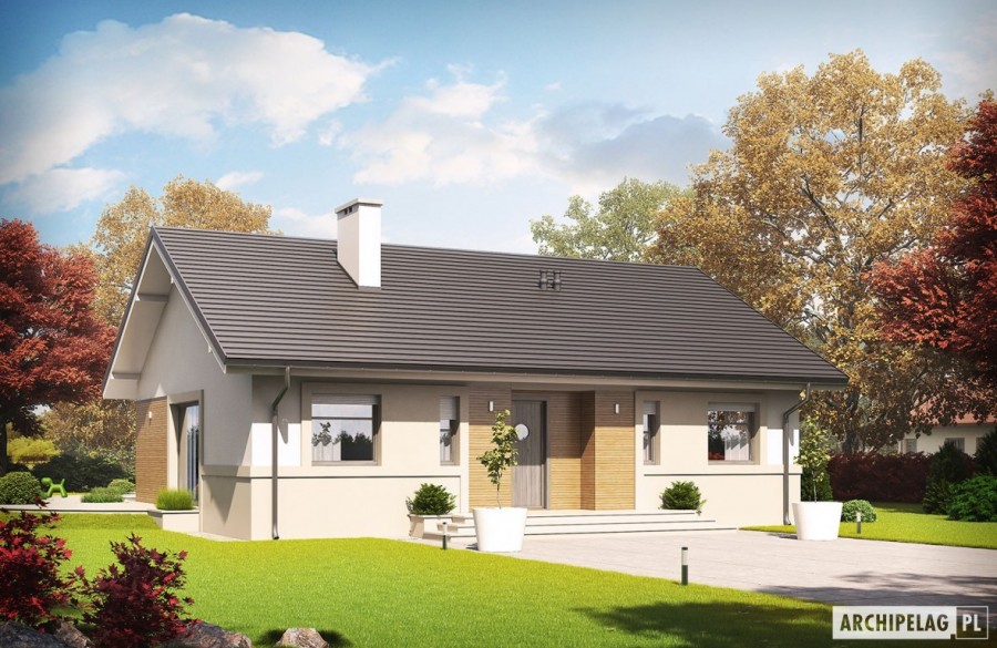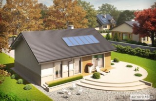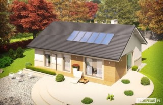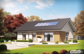Charakterystyka: Dom parterowy, niepodpiwniczony.Przeznaczenie: Dom dla 3-4-osobowej rodzinyTechnologia i konstrukcja: Ściany zewnętrzne: murowane dwuwarstwowe, ocieplenie Termo Organika 20 cm Strop: gęstożebrowy Dach: konstrukcja drewniana, ocieplenie wełna mineralna, dachówka płaska lub inna o podobnych parametrach, więźba dachowa dostępna również w systemie prefabrykacji drewnianejRozwiązania instalacyjne: Ogrzewanie: kocioł gazowy, rozprowadzenie ciepła: grzejniki Wentylacja: grawitacyjna Wykończenie: Elewacje: tynk cienkowarstwowy mineralny Termo Organika i okładzina z płyty HPL z naturalną okleiną drewnianą firmy Prodema Stolarka: drewniana, PCV lub aluminiowa, drzwi wejściowe firmy Hörmann. Rolety zewnętrzne w systemie CleverBox firmy BeCleverWersje - zapytaj o dostępność:- Kornel ENERGO– różne wersje garaży lub wiata- Kornel II ENERGO – inne zaakcentowanie strefy wejściowej, z zadaszeniem tarasu ogrodowego- Kornel III ENERGO – inne zadaszenie wejścia do budynku- Kornel IV ENERGO – z systemem suchej zabudowy ścian działowych Rigips, wiązary prefabrykowane- Kornel V ENERGO – inne zaakcentowanie strefy wejściowej- Kornel VI ENERGO – inne zaakcentowanie strefy wejściowej, z zadaszeniem tarasu ogrodowego- każda wersja z wiatą, garażem jedno- lub dwustanowiskowym oraz bez garażu- odbicie lustrzane do każdej wersjiRóżnice i podobieństwa:- różne propozycje wykończenia elewacji- taki sam układ funkcjonalny we wszystkich wersjach- różnice w aranżacjach strefy sanitarnej- standard ociepleń ENERGO we wszystkich wersjachIstnieje techniczna możliwość- zbliźniaczenia lub wykonania domu dwurodzinnego- podpiwniczeniaAtuty projektu okiem architekta- Bryła sprzyjająca energooszczędności, zminimalizowane ryzyko występowania mostków termicznych- Okna o niskim współczynniku przenikania ciepła- Elegancka, prosta bryła - Funkcjonalne, ergonomiczne wnętrze- Zastosowanie oryginalnych materiałów wykończeniowych- Szykowna kompozycja elewacji- Wygodny, duży taras dostępny z pokoju dziennego- Duże przeszklenia od strony ogrodu- Wygodna strefa nocna- Duże pomieszczenie kotłowni pozwala na zastosowanie dowolnego źródła ogrzewania- Zblokowane piony instalacyjne generują oszczędności kosztów rozprowadzenia instalacji
