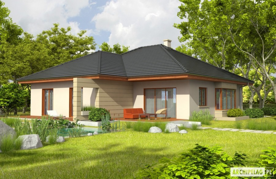 Charakterystyka: Dom parterowy z poddaszem do późniejszej adaptacji, niepodpiwniczony, z garażem dwustanowiskowym Przeznaczenie: Dom dla 4-5 osobowej rodziny Technologia i konstrukcja: Ściany zewnętrzne: murowane Strop: gęstożebrowy Dach: konstrukcja drewniana, ocieplenie wełna mineralna, dachówka ceramiczna lub cementowa Inne: schody wewnętrzne drewnianeRozwiązania instalacyjne: Ogrzewanie: kocioł gazowy, rozprowadzenie ciepła: grzejniki Wentylacja: grawitacyjna Wykończenie: Elewacje: tynk mineralny i okładzina kamienna, cokół okładzina klinkierowa Stolarka: drewniana lub PCV Otoczenie: system tarasowy ProDeck - deska kompozytowa Terra w kolorze wiśniaWersje - zapytaj o dostępność: - Kornelia – inne detale wykończenia bryły i elewacji przy salonie i w strefie wejściowej, inny wykusz, dach z falą - Kornelia 01 – wersja z podpiwniczeniem, dach z falą - Kornelia II LecaDOM – dom w technologii Leca®KERAMZYT, inne detale wykończenia bryły i elewacji przy salonie i w strefie wejściowej, inny wykusz - Kornelia III – bez garażu i z garażem jednostanowiskowym - Kornelia IV – system suchej zabudowy ścian działowych Rigips, inne detale wykończenia bryły i elewacji przy salonie i w strefie wejściowej, inny wykusz - każda wersja z garażem jedno- lub dwustanowiskowym oraz bez garażu - odbicie lustrzane do każdej wersjiRóżnice i podobieństwa: - podobne układy funkcjonalne we wszystkich wersjach - podobne powierzchnie użytkowe - budynki o różnych gabarytach - różne propozycje wykończenia elewacjiIstnieje techniczna możliwość: - podpiwniczenia budynku