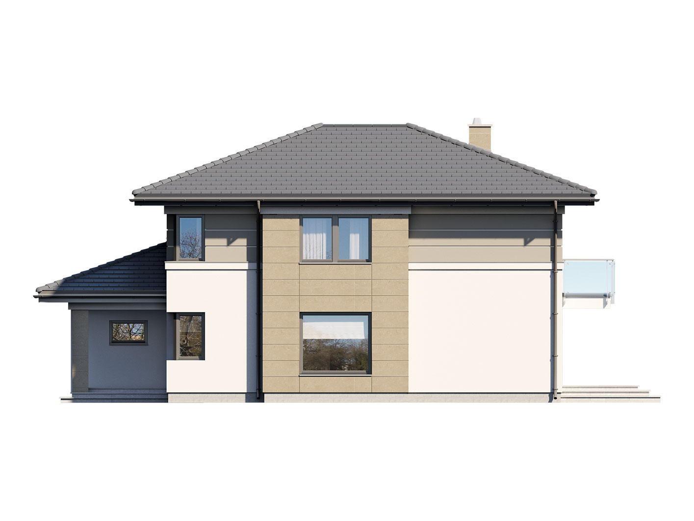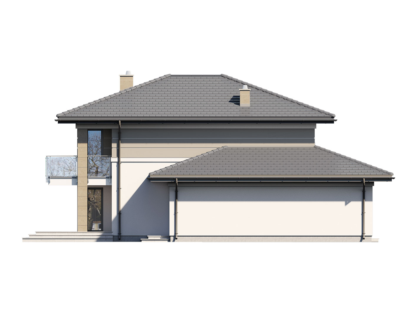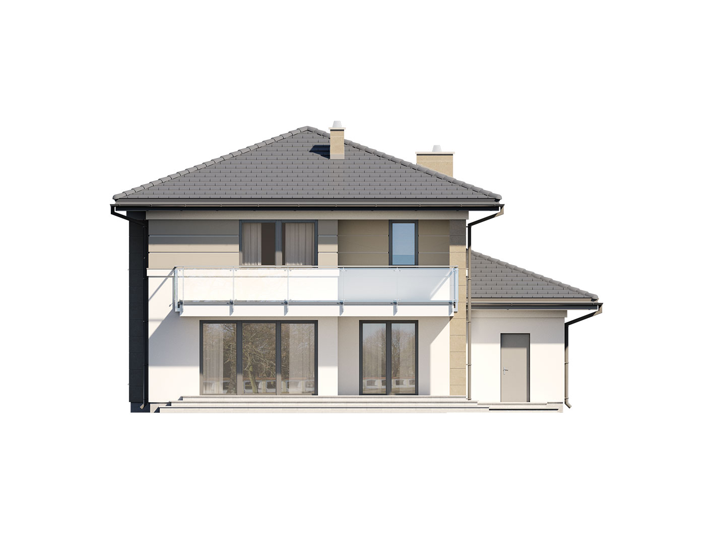 Korso, to projekt reprezentacyjnego domu piętrowego przeznaczonego dla 4-osobowej rodziny. Jest to typowo miejska rezydencja o nowoczesnym wyglądzie i optymalnej powierzchni użytkowej. Posiada bogaty program funkcjonalny, rozłożony na dwóch pełnych kondygnacyjnych, który zapewni komfort nawet dla wymagających inwestorów. Parter zaprojektowano jako otwartą przestrzeń dzienną, złożoną z połączonego salonu, jadalni i kuchni. Przewidziano tutaj także dodatkowy pokój, który można wykorzystać jako gabinet lub dodatkową sypialnię. Na parterze znajduje się również duża kotłownia, na każdy rodzaj paliwa oraz garaż o szerokości 1,5 miejsca postojowego.Dzięki osłonięciu częściowo zadaszonych tarasów, uzyskano na tarasie prywatną strefę wypoczynku. Na piętrze zaprojektowano 3 sypialnie, łazienkę i pralnię. Główna sypialnia ma zapewnioną własną garderobę oraz łazienkę. Taką dodatkową przestrzeń można według potrzeb przerobić np. na kącik do pracy. Korso zachwyca wysmakowaną, ponadczasową, klasyczną bryłą ujętą we współczesny elegancki wizerunek. Rezydencja ta stanowi doskonałą propozycję dla inwestorów poszukujących komfortowego domu w estetycznym wydaniu.