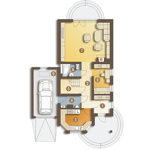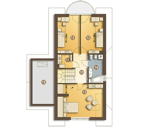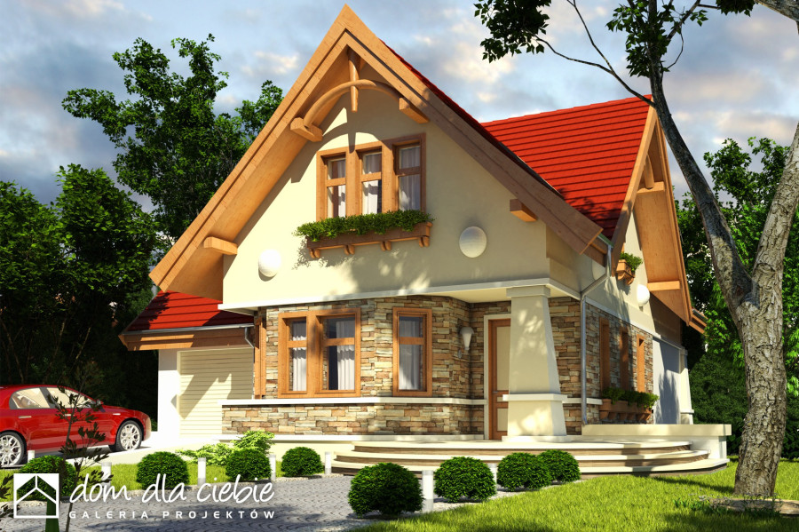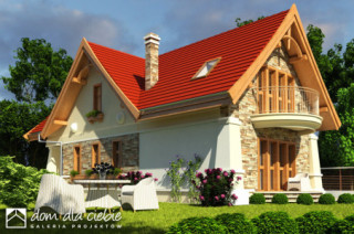 Kowalik to przytulny, niewielki domek piętrowy dla 4 osobowej rodziny. Parter jako część ogólna obejmuje symetryczny i ustawny salon z kominkiem, kuchnię, pokój gościnny, łazienkę oraz pomieszczenie gospodarcze z piecem CO stanowiące przejście do garażu. Piętro to część prywatna, obejmująca: trzy sypialnie oraz wspólną łazienkę.fundamenty: BETONOWE ściany zewnętrzne: POROTHERM+STYROPIAN TERMO ORGANIKA ściany wewnętrzne: POROTHERM rodzaj stropu: TERIVA elewacje: TYNK AKRYLOWY, OKŁADZINA KAMIENNA pokrycie dachu: DACHÓWKA CEM. lub CER