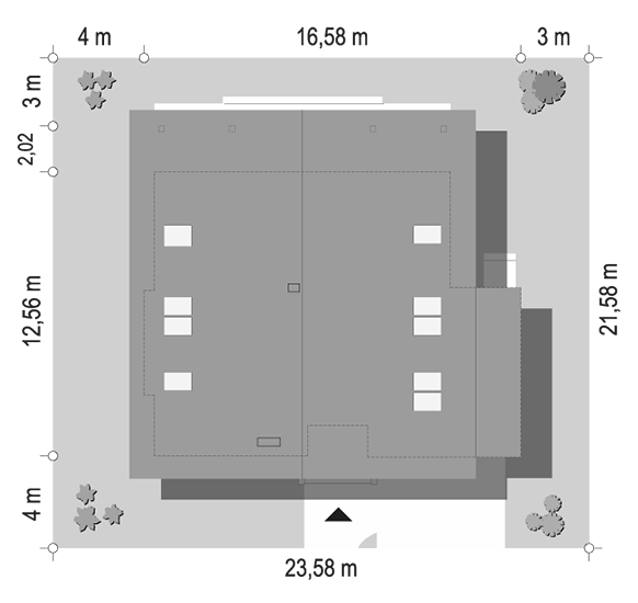 Wejście przez wiatrołap. Po prawej stronie kotłownia. Po kilku stopniach wchodzi się do holu, skąd na wprost znajduje się pokój dzienny. Po lewej stronie znajduje się kuchnia i spiżarka, a po prawej pokój i łazienka. Na poddaszu 3 pokoje, łazienka i garderoba. Do budynku jest dostawiony garaż. Do Rodziny Kraba należą ekonomiczne domy parterowe z użytkowym poddaszem z zakresu powierzchni 90-120m2. Podobnie jak Fiona i Amelia wykorzystują działkę z lekkim spadkiem ku wjazdowi. Do części mieszkalnej, przekrytej dwuspadowym dachem o kalenicy równoległej do drogi dojazdowej, przylega garaż z pulpitową połacią. Razem z wejściem do domu, sienią i sporą kotłownią ulokowano go niżej o 90cm w stosunku do poziomu parteru. Wysunięty przedsionek przekryto, wraz z podcieniem na słupie, przedłużoną połacią głównego dachu z trójkątną lukarną doświetlającą klatkę schodową. W najmniejszym projekcie domu Krab, jak we wszystkich wersjach, salon i dodatkowy pokój można połączyć w większe pomieszczenie, tradycyjnie oddzielone od kuchni i holu z łazienką ścianą nośną. Ulokowanie schodów w środku części frontowej pozwala racjonalnie rozwiązać poddasze i zminimalizować powierzchnię komunikacji. Trzy sypialnie dla czterech osób i łazienka są dzięki temu wygodne i foremne. Rodzina Kraba proponuje różne wielkości domu rozplanowanego w taki sam sposób na rzucie, który od proporcji kwadratu w projekcie niepodpiwniczonego domu Krab, rośnie wzdłuż kalenicy