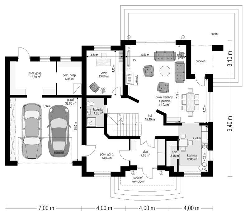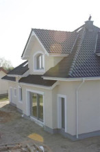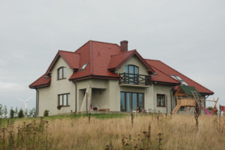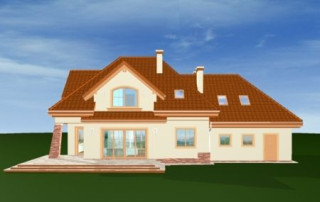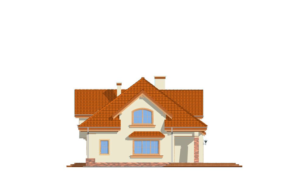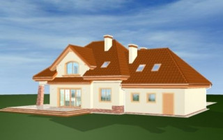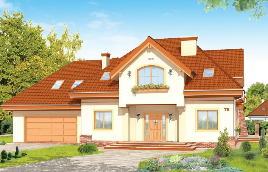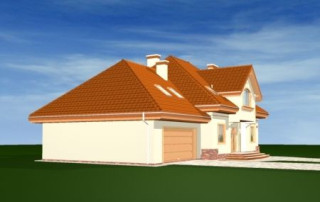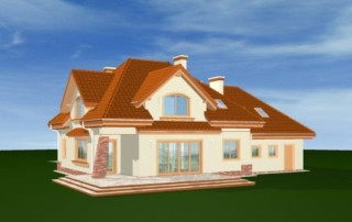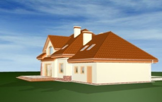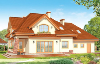 Projekt domu Edyta to wygodny domek jednorodzinny dla rodziny 4- 5-osobowej. Posiada rozbudowaną częścią garażową ze strychem, która może być wykończona w późniejszym etapie. Budynek zaprojektowano na planie prostokąta przekrytego wielospadowym dachem z dużymi lukarnami. Do domu Edyta dobudowana jest część garażowa, z dużym strychem do dowolnego wykorzystania. Architektura domu jest tradycyjna, ale zawiera też elementy nowoczesne, takie jak duże przeszklenia salonu, czy finezyjna podpora podcienia. Wnętrze: na parterze zaprojektowano salon z jadalnią i częściowo otwartą kuchnią, holl z ozdobnymi schodami, dodatkowy pokój i duże zaplecze gospodarcze, z dużym garażem i kotłownią. Na poddaszu zaplanowano trzy sypialnie, w tym jedna z własną łazienką i garderobą. Strych można wykorzystać np. na domową siłownię i saunę. Projekt domu Edyta dostępny jest również w wersji odbicia lustrzanego.