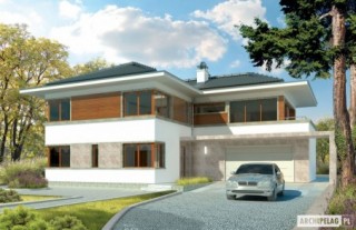 Charakterystyka: Dom piętrowy, niepodpiwniczony, z garażem dwustanowiskowym Przeznaczenie: Dom dla 5-6 osobowej rodzinyTechnologia i konstrukcja: Ściany zewnętrzne: murowane, Strop: gęstożebrowy Dach: konstrukcja drewniana, dachówka ceramiczna lub cementowa. Więźba dachowa dostępna również w systemie prefabrykacji drewnianej. Inne: schody wewnętrzne drewnianeRozwiązania instalacyjne: Ogrzewanie: kocioł gazowy, rozprowadzenie ciepła: grzejniki Wentylacja: grawitacyjna Wykończenie: Elewacje: tynk mineralny, okładzina drewniana i kamienna Stolarka: drewniana lub PCV Inne: System tarasowy ProDeck - deska kompozytowa Terra w kolorze platynaWersje - zapytaj o dostępność: - Leonardo – bez garażu lub z garażem jednostanowiskowym - Odbicia lustrzane do wszystkich wersji