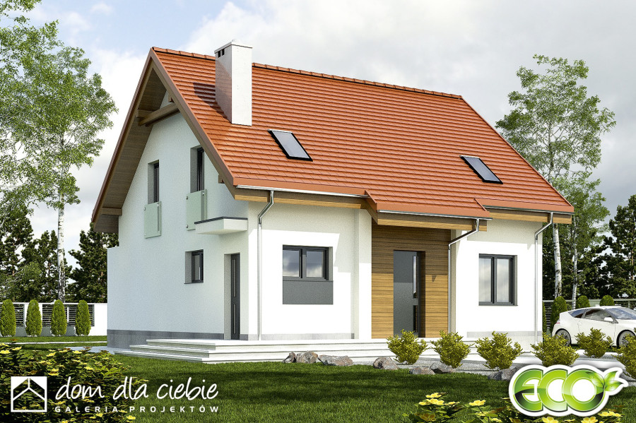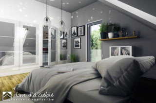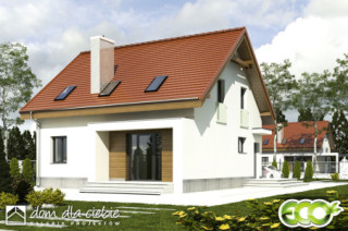 Projekt gotowy Lerka to dom stanowiący doskonały melanż tradycji i nowoczesności. Dom charakteryzuje się prostą formą i nieskomplikowaną funkcją użytkową. Minimalizm i ład w elewacjach budynku wpływa na obniżenie kosztów budowy. Ze względu na ekonomię zrezygnowano z balkonów i lukarn, w zamian zastosowano nowoczesne okna typu porfenetr zapewniające doskonałe doświetlenie pomieszczeń. Parter stanowiący dzienną strefę domu zawiera hol, łazienkę, salon z kuchnią i spiżarnią a także dodatkowy pokój z przeznaczeniem na gabinet lub pokój gościnny. Piętro czyli strefa nocna to 3 wygodne sypialnie oraz łazienka a także garderoba z pralnią.