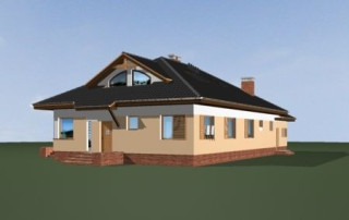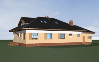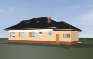 Projekt domu Familijny to propozycja willi dla trzypokoleniowej rodziny, z odrębnym mieszkaniem dla dziadków lub dziecka z własną rodziną. Dom Familijny ma rozłożystą bryłę, przekrytą niewysokim wielospadowym dachem. Układ pomieszczeń i wejścia do obu części domu zaprojektowano tak, aby dom pasował na działkę z niekorzystnym położeniem względem stron świata. Doskonale nadaje się na działkę gdzie planowany jest ogród od strony wejścia. Pracownia dysponuje również odbiciem lustrzanym projektu domu Familijny.