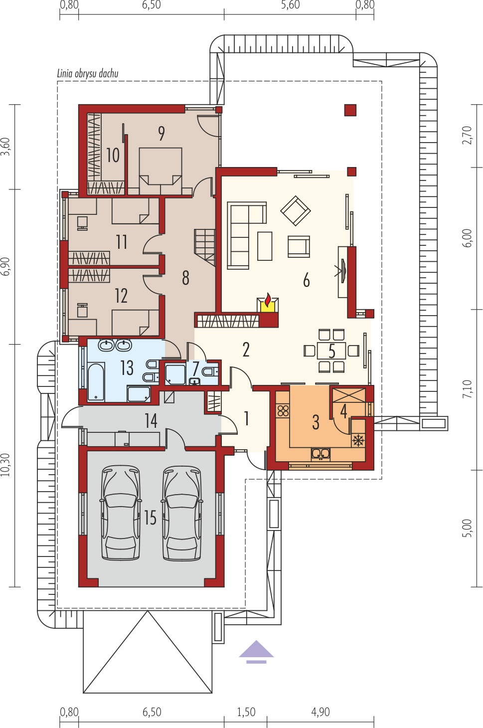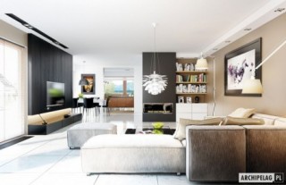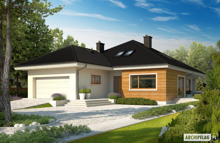 Standard MULTI-COMFORT:Dom spełnia standard MULTI-COMFORT Grupy Saint-Gobain. Komfort rozumiany jako wpływ środowiska, w którym mieszkamy na nasze samopoczucie i zdrowie. Dom realizuje tę ideę za pomocą właściwego połączenia wszystkich elementów funkcjonujących w budynku – odpowiedniego oświetlenia, właściwej wentylacji, konstrukcji ścian, dachu oraz instalacji, przy jednoczesnej trosce o środowisko naturalne. Najwyższą jakość produktów Saint-Gobain zapewniają marki: ISOVER, Rigips, Ecophon, PAM, Weber, Glass oraz Glasssolution. Charakterystyka: Dom parterowy z poddaszem do późniejszej adaptacji na cele mieszkalne, niepodpiwniczony, z garażem dwustanowiskowymPrzeznaczenie: Dom dla 3-4-osobowej rodzinyTechnologia i konstrukcja:Fundamenty: ławy, bloczki betonowe 24 cm, ocieplenie styropian 15 cmŚciany zewnętrzne: murowane, dwuwarstwowe, beton komórkowy 24 cm, ocieplenie 25 cmŚciany wewnętrzne: murowane, cegła wapienno-piaskowa, ściany nośne 24 cm, ścianki działowe 12 cmPodłoga na gruncie: płyta betonowa, ocieplenie wełna mineralna 20 cmStrop: strop międzypiętrowy gęstożebrowy TerivaDach: konstrukcja drewniana, ocieplenie wełna mineralna 30 cm, dachówka ceramicznaRozwiązania instalacyjne: Ogrzewanie: kocioł gazowy, rozprowadzenie ciepła: grzejniki Wentylacja: grawitacyjna Wykończenie:Elewacja: tynk cienkowarstwowy mineralny i okładzina z płyty HPL z naturalną okleiną drewnianą firmy ProdemaStolarka: drewniana, PCV lub aluminiowa, drzwi wejściowe i brama garażowa firmy HörmannWersje - zapytaj o dostępność:- Liv 3 – wersja standardowa, bez garażu lub z garażem jedno- lub dwustanowiskowym- Odbicie lustrzane do każdej wersjiIstnieje techniczna możliwość:- podpiwniczenia budynku- adaptacji poddasza na cele mieszkalneAtuty projektu okiem architekta:- W projekcie zastosowano rozwiązania technologiczne Grupy Saint-Gobain- Znakomite parametry cieplne- Funkcjonalne i ergonomiczne wnętrze z podziałem na strefę dzienną i nocną- Kuchnia z praktyczną spiżarnią- Reprezentacyjny, doskonale przeszklony salon z kominkiem- Główna sypialnia z własną garderobą- Funkcjonalne szafy wnękowe- Duże, atrakcyjne przeszklenia w salonie i w jadalni, zapewniające widok na ogród- Częściowo zacieniony taras w podcieniu- Wejście do budynku osłonione przed wiatrem i śniegiem- Garaż oddzielony termicznie od ogrzewanej części budynku- Duże pomieszczenie kotłowni pozwala na zastosowanie dowolnego źródła ogrzewania