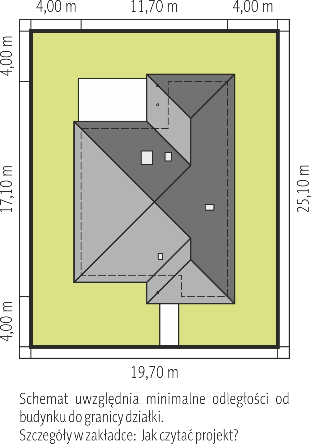 Parterowy dom z poddaszem w stylu tradycyjnym o powierzchni użytkowej 226,49 m2. Dom z dużym garażem oraz wejściem od południa.