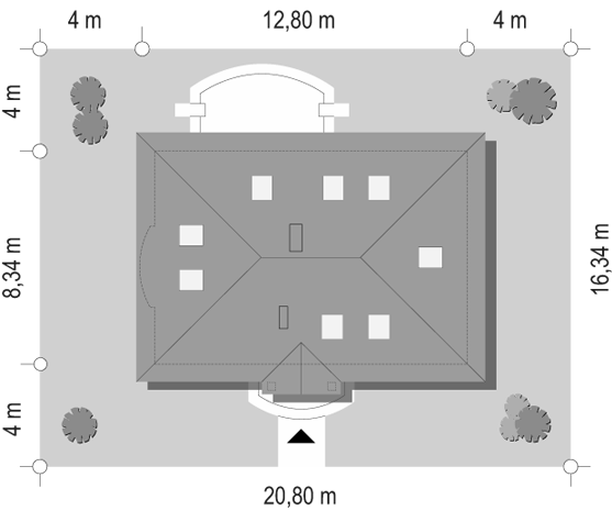 Parterowy dom z poddaszem w stylu tradycyjnym o powierzchni użytkowej 101,02 m2. Dom z jednostanowiskowym garażem. Projekt domu na działkę o minimalnych wymiarach 22,35x18,6 m.