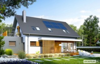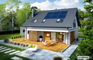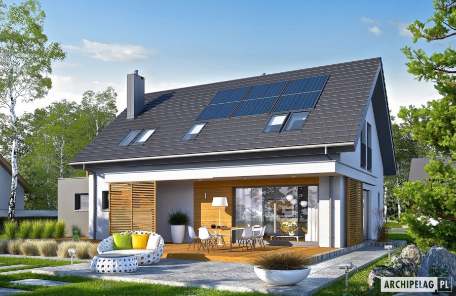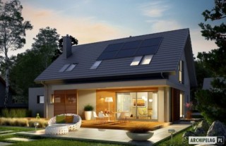 Charakterystyka: Dom parterowy z poddaszem użytkowym, niepodpiwniczony, z garażem jednostanowiskowym Przeznaczenie: Dom dla 3-5-osobowej rodziny Technologia i konstrukcja: Ściany zewnętrzne: murowane, dwuwarstwowe, pustaki ceramiczne 24 cm, ocieplenie wełna mineralna 20 cm Strop: strop międzypiętrowy gęstożebrowy Teriva Dach: konstrukcja drewniana, ocieplenie wełna mineralna 30 cm, dachówka ceramiczna płaska Bergamo firmy Röben Inne: schody wewnętrzne drewniane Rozwiązania instalacyjne: Ogrzewanie: kocioł gazowy kondensacyjny, rozprowadzenie ciepła: grzejniki Wentylacja: grawitacyjna OZE: kolektory słoneczneWykończenie: Elewacje: tynk cienkowarstwowy mineralny w kolorze TO-PA001 i TO-GY014 z palety firmy Termo Organika, okładzina z płyty HPL z naturalną okleiną drewnianą firmy Prodema Stolarka: drewniana, PVC lub aluminiowa, drzwi wejściowe i brama garażowa firmy HörmannOtoczenie: system tarasowy ProDeck - deska kompozytowa Terra w kolorze złoty dąbOkna połaciowe: rozwiązania technologiczne i wyłaz dachowy firmy Velux. Pobierz ekspercki poradnik VELUX i dowiedz się jak wybrać okna dachoweWersje -zapytaj o dostępność:- Logan – bez garażu lub z garażem dwustanowiskowym- Logan II - z filarem od frontu, inne wykończenie elewacji, różne wersje garaży- odbicie lustrzane do każdej wersji Istnieje techniczna możliwość: - podpiwniczenia budynku - wykonania budynku w technologii szkieletowej