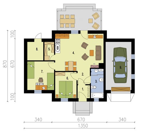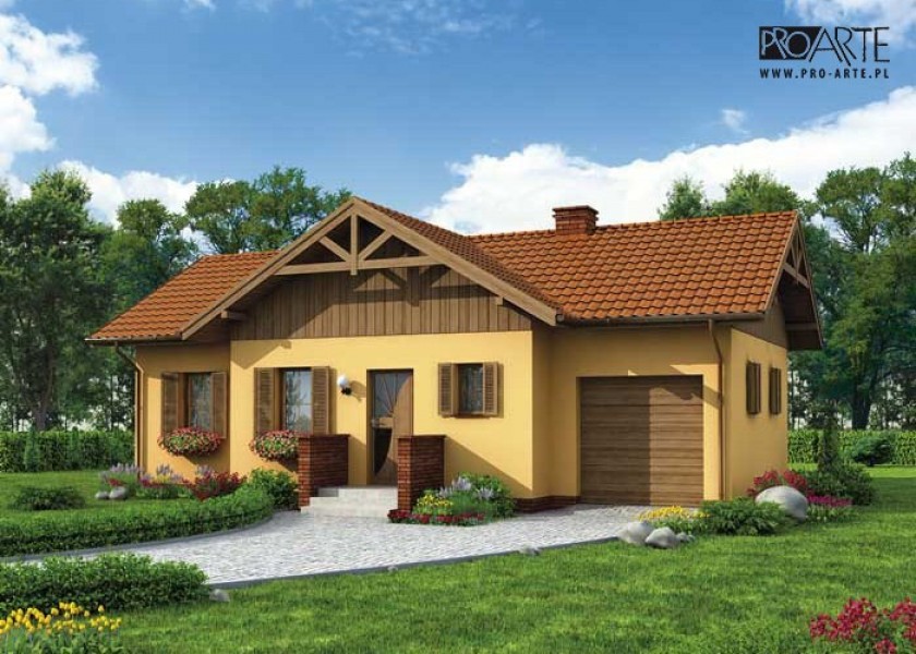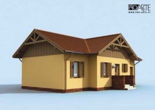 To niewielki dom emanujący dużą ilością ciepła, które jest naprawdę ważne, gdy chcemy czuć się dobrze w czterech ścianach. Przyjazny wygląd zapewnia Lozannie drewno, które otula ok. 30% zewnętrznej powierzchni ścian, oraz cegła występująca od frontu i na tyłach budynku. Na przedniej elewacji widoczna jest w postaci murku, który podkreśla drzwi wejściowe i uprzedzające je schodki. Tylnia elewacja prezentuje natomiast elegancki taras wykonany również z cegły. W tym domku parterowym wszystkie pomieszczenia znajdują się w zasięgu ręki, dzięki czemu chętniej będziemy zaglądać do różnych jego zakamarków. Oprócz tradycyjnych pokoi, takich jak salon z kuchnią i aneksem jadalnym, dwóch sypialni oraz łazienki dom posiada spiżarnię, pomies
