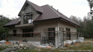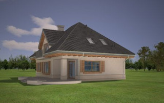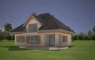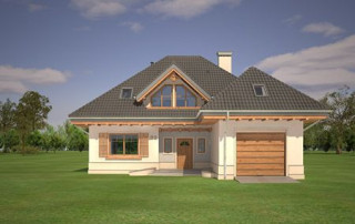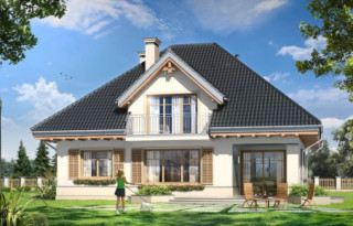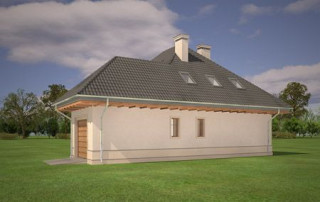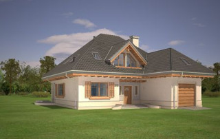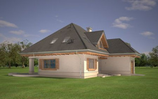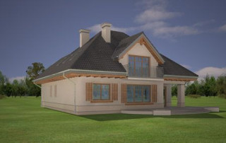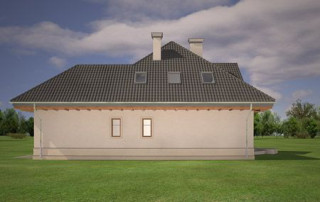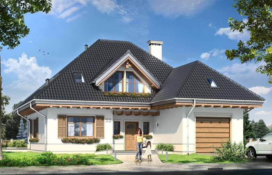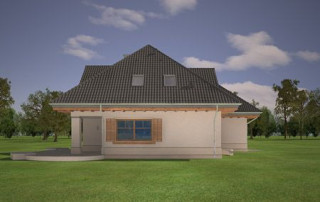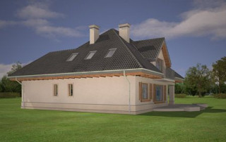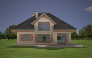 Projekt domu Fantazja to piękna podmiejska willa z dopracowanym detalem architektonicznym, oraz funkcjonalnym wnętrzem. Dom Fantazja to budynek parterowy, z poddaszem użytkowym. Zaprojektowano go dla 4-5 osobowej rodziny. Główna bryła budynku przekryta jest czterospadowym dachem. Do budynku dokomponowano garaż, oraz dodano dwie duże lukarny - od frontu i od ogrodu. Kształt dachu, lukarn, okapy, ściany parteru z szerokim pasem podmurówki, masywne kominy - wszystkie te elementy przywołują wspomnienie przedwojennych domów - solidnych i długowiecznych, wrośniętych w otoczenie. Połączenie historyzującego detalu i nowoczesnych materiałów tworzą harmonijną całość. Wnętrze domu podzielono na strefę dzienną na parterze i sypialnie na poddaszu. Na dole jedną przestrzeń dzienną tworzą salon, jadalnia, hol z ładnymi wyeksponowanymi schodami i centralnym komikiem, oraz częściowo otwarta kuchnia. Dodatkowy pokój przy schodach może pełnić funkcję gabinetu lub sypialni. W projekcie domu Fantazja, na parterze zaplanowano również garaż, pomieszczenie gospodarcze - kotłownię, oraz przedsionek. Na poddaszu zaprojektowano trzy bardzo wygodne i przestronne sypialnie. Sypialnia rodziców - to osobny apartament - z balkonem na ogród, własną łazienką i dużą garderobą. Sypialnie dzieci mają osobną łazienkę i duże wnęki szaf zabudowanych. Z jednej sypialni można dostać się na strych nad garażem. Wnętrze domu połączone jest z ogrodem przez dużymi oknami i szerokim wyjściem na częściowo zadaszony taras. Pracownia posiada odbicie lustrzane projektu domku Fantazja.