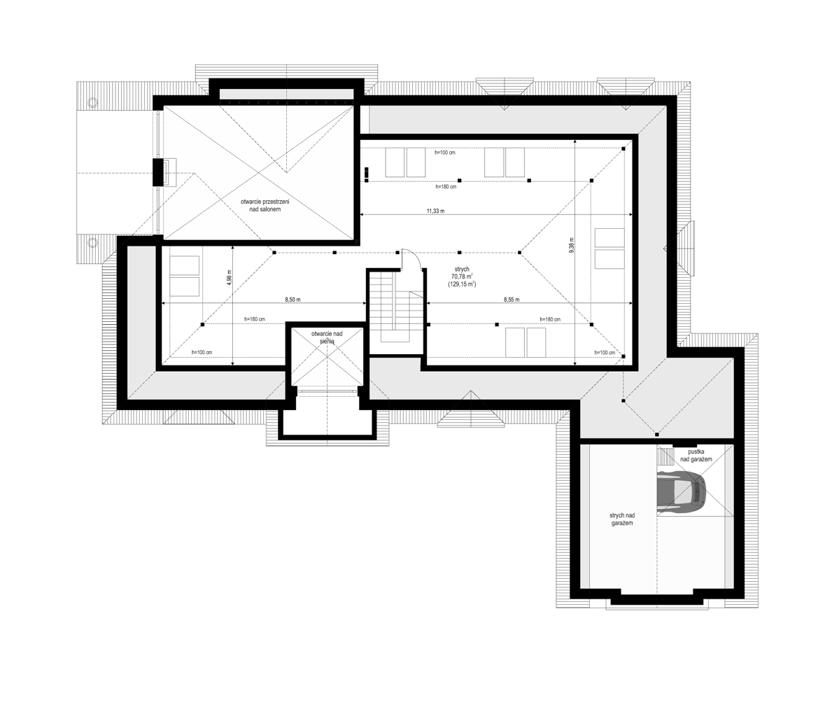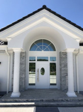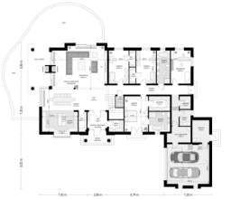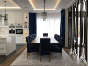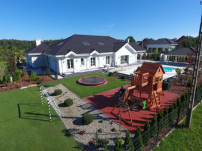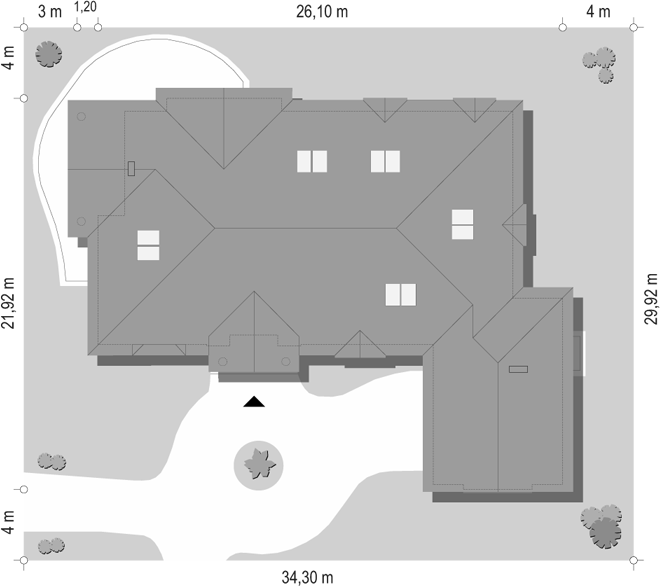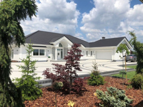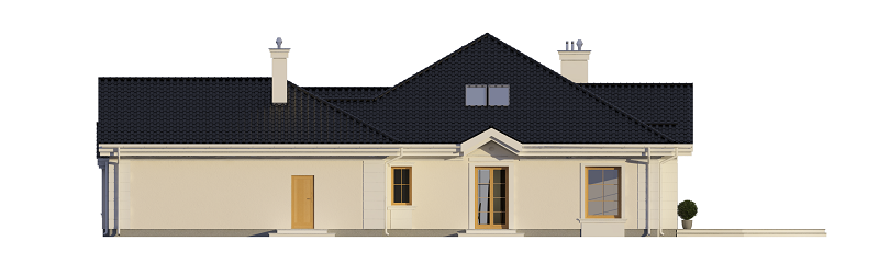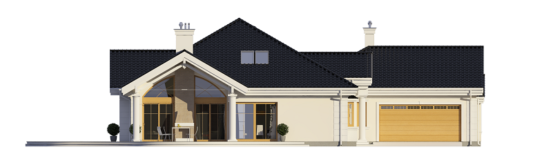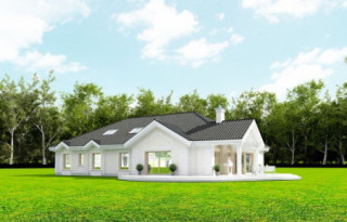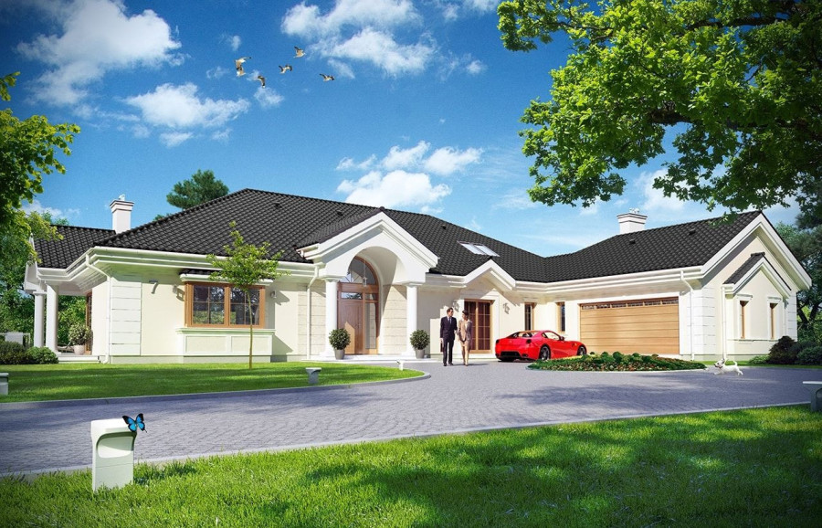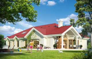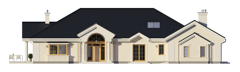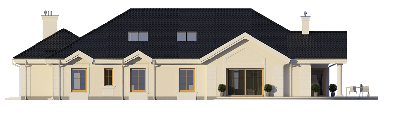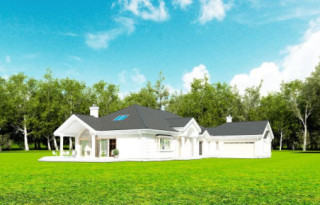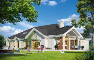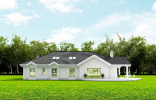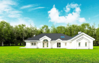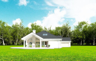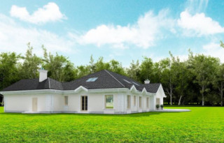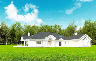 Projekt domu Rezydencja parkowa 2 jest nieco mniejszą wersją popularnego projektu Rezydencja parkowa. Projekt jest odpowiedzią na pragnienie wielu Inwestorów, aby zamieszkać w rozległej parterowej willi, na jednej kondygnacji, blisko otaczającego dom ogrodu. Mieszkanie w parterowym domu daje ogromne poczucie komfortu - nie ma wiecznego biegania po schodach. Dom przeznaczony jest dla 4- 6-osobowej rodziny. Wnętrze Rezydencji parkowej 2 podzielono na trzy części : dzienną - dużą otwartą przestrzeń użytkowaną wspólnie przez domowników, część nocną - z sypialniami, łazienkami i garderobami, oraz część gospodarczą - z pomieszczeniami gospodarczymi i wygodnym garażem. Reprezentacyjny salon, połączony z jadalnią, holem i kuchnią tworzy bardzo atrakcyjne wnętrze. Będzie w nim można urządzać fantastyczne przyjęcia z rodziną i znajomymi. Z salonu wychodzimy do ogrodu - przez obszerny podcień z kominkiem, lub bezpośrednio drzwiami balkonowymi na taras tylni. Wygodna część wejściowa – z dużą sienią, holem i eleganckimi schodami zaprasza wchodzące do domu osoby. W części nocnej umieszczono sypialnie - państwa domu i dzieci. Sypialnia rodziców to osobny apartament – z własną łazienką i dużą garderobą. Zaletą domu Rezydencja parkowa 2 jest niewątpliwie niemała część gospodarczo-techniczna, z podwójnym garażem i pomieszczeniami gospodarczymi. Nad parterem przewidziano dużą przestrzeń strychową, którą można zaadaptować na część użytkową. Wówczas uzyskujemy dodatkowe ca 60 m2 powierzchni wnętrza. Architektura zewnętrzna domu nawiązuje do klimatu polskiego dworku w połączeniu z językiem detali zaczerpniętych z amerykańskich, czy francuskich podmiejskich willi. Taki styl architektoniczny zapewni domowi ponadczasowość - budynek nigdy nie stanie się niemodny, nigdy się nie zestarzeje. Projekt domu Rezydencja parkowa 2 jest praktyczną, nowoczesną, „kompaktową” rezydencją na miarę XXI wieku. Pracownia oferuje też wersję domu w odbiciu lustrzanym, oraz inne wersje serii: Rezydencja Parkowa, Rezydencja Parkowa 3, Rezydencja Parkowa 3 B, Rezydencja Parkowa 3 C, Rezydencja Parkowa 3 D, Rezydencja Parkowa 4.