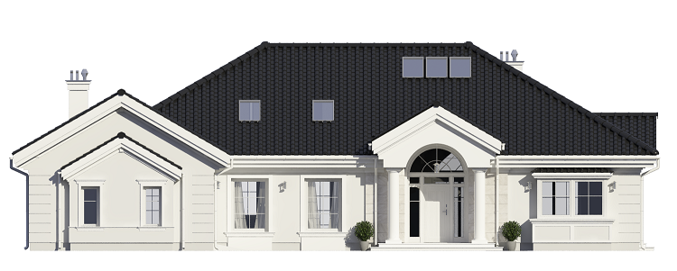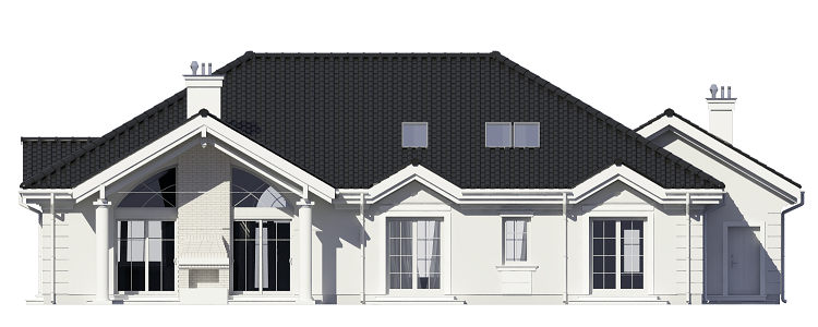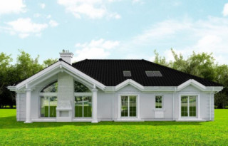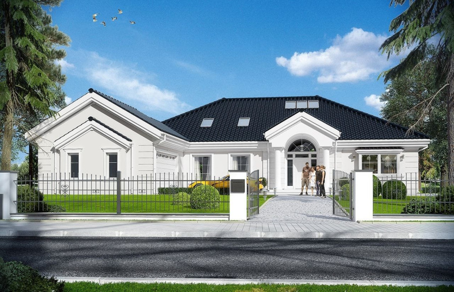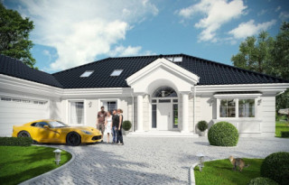 Projekt domu Rezydencja Parkowa 3 jest kolejną wersją cieszącego się popularnością projektu z serii „Rezydencja Parkowa”. Dom został zaprojektowany jako zmniejszona wersja, o mniejszych wymiarach zewnętrznych, powierzchni zabudowy i powierzchni parteru. Do budynku dodano jednak poddasze użytkowe o powierzchni ponad 50 m2, oraz ponad stumetrową piwnicę. Także gdy razem zliczymy wszystkie kondygnacje dom jest duży. Można wybudować go z piwnicą lub bez, oraz z zagospodarowanym poddaszem, lub pozostawionym strychem nieużytkowym. Wszystko zależy od potrzeb Inwestora i obszerności jego portfela. Piwnicę i poddasze można wykończyć w drugim etapie. To rozłoży koszty budowy na dłuższy okres, a jednocześnie dodatkowa powierzchnia zapewnia bufor zapasowej przestrzeni, która może okazać się przydatna po kilku latach mieszkania. Projekt domu Rezydencja parkowa 3 został zaprojektowany jako podmiejska lub wiejska rezydencja, nawiązująca architekturą do dworków polskich, oraz amerykańskich wilii z przedmieść. Dom został zamknięty w prostokątnej bryle, z dobudowaną częścią garażową. Całość jest przekryta łagodnym wielospadowym dachem. Elewacje ozdabiają detale: wejściowy portyk, wykusze, podcienie, ciekawe okna z łukami. Wszystkie elementy są stylowe, ale całość osadzona jest we współczesności, z nowoczesnymi materiałami i kolorystyką. Dzięki takiemu połączeniu dom jest klasyczny a jednocześnie nowoczesny - tak architektura nigdy się nie zestarzeje. Wnętrze domu: na parterze zaprojektowano wszystkie potrzebne pomieszczenia. Cały program funkcjonalny dla 4- 5-osobowej rodziny. Jest tutaj jednoprzestrzenne wnętrze dzienne otwarte na antresolę na poddaszu. Jest też część z sypialniami, łazienkami i garderobami. W części gospodarczej znajduje się garaż i pomieszczenia gospodarcze. W wersji podstawowej projektu do dyspozycji mieszkańców jest spore poddasze, z dodatkowymi pokojami, oraz duża piwnica. Można oczywiście wykonać dom bez podpiwniczenia. To kwestia decyzji inwestora. W projekcie zastosowano nowoczesne materiały i energooszczędne rozwiązania. Projekt domu Rezydencja Parkowa 3 – jak na swoją skalę - ma dość prostą konstrukcję i powinien być łatwy w budowie. Utrzymanie domu dzięki energooszczędnym rozwiązaniom i zwartej bryle również będzie się mieścić w rozsądnych kwotach. Podane koszty realizacji dotyczą projektu Rezydencja Parkowa 3 z piwnicą i poddaszem. Koszty bez piwnicy podano osobno. Projekt dostępny jest w odbiciu lustrzanym oraz kilku wersjach:Rezydencja Parkowa, Rezydencja Parkowa 2, Rezydencja Parkowa 3 B, Rezydencja Parkowa 3 C, Rezydencja Parkowa 3 D, Rezydencja Parkowa 4.