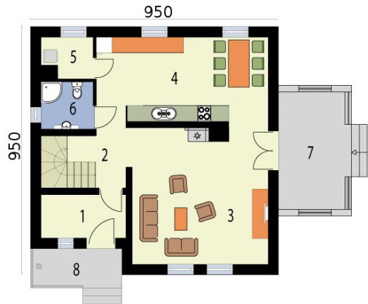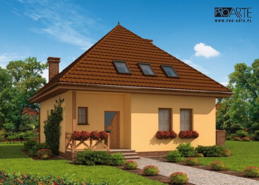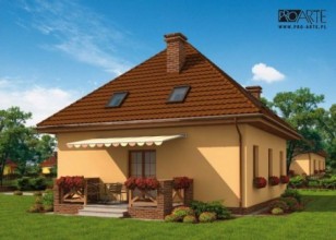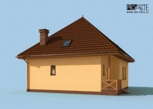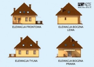 Wejście usytuowane jest od południa. Ganek znajdujący się w niedużej wnęce zachęca do wejścia do środka. Prowadzi on do wiatrołapu, po wyjściu z którego po lewej znajduje się komunikacja, naprzeciw niej natomiast usytuowany jest przestronny, ale i przytulny salon. Można z niego wyjść na sporych rozmiarów taras, który stwarza wiele okazji do rodzinnych spotkań oraz całorocznego uroczystego świętowania na świeżym powietrzu. Kuchnia znajduje się tuż za salonem i jest połączona z jadalnią. Posiada ona połą