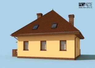 Ten projekt zwraca uwagę niezwykłym zachowaniem proporcji oraz symetrii, które przełamuje spadzisty dach (43 stopnie nachylenia), tym sposobem całość jawi się jako połączenie prostoty z elegancją.
