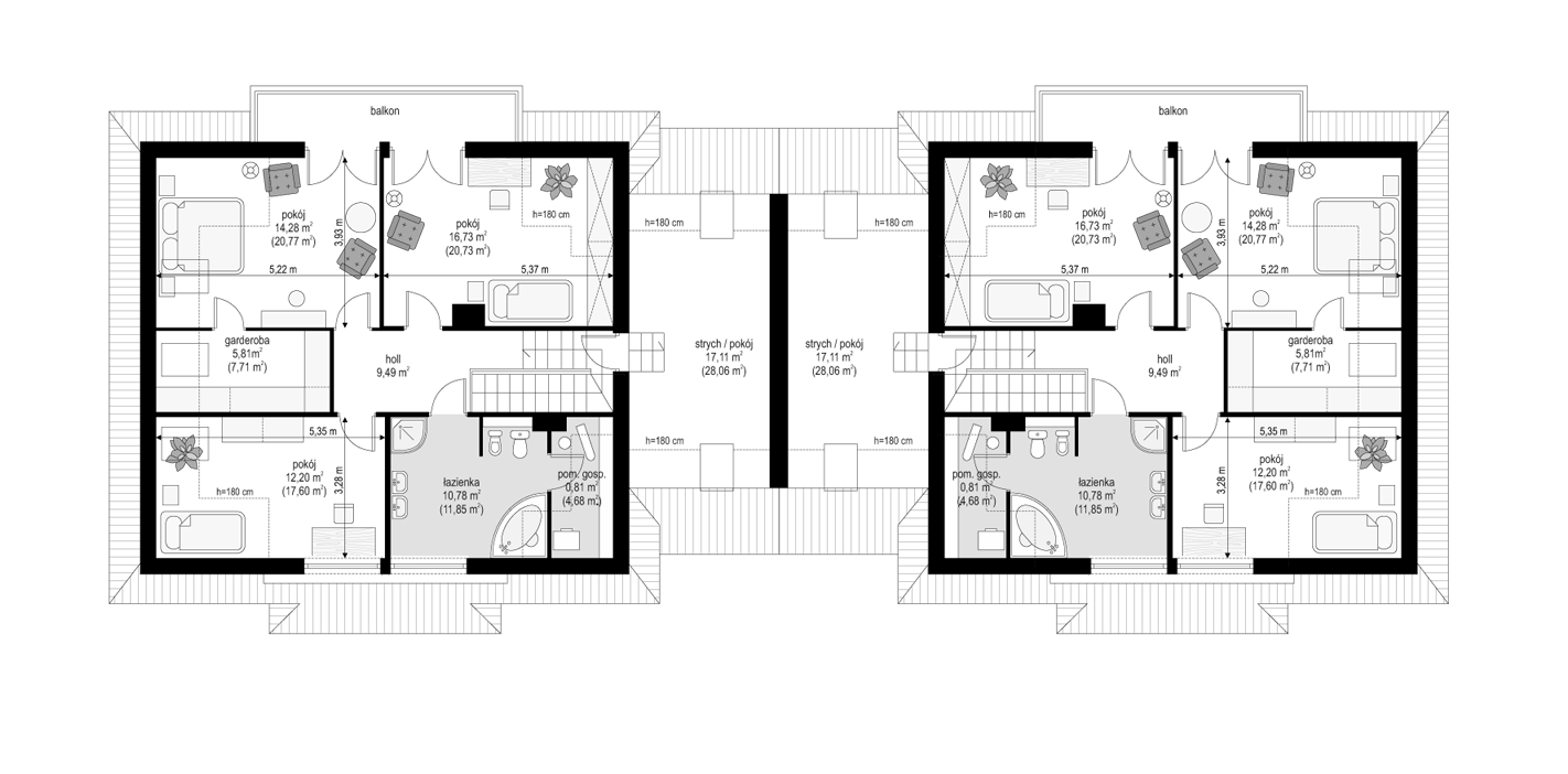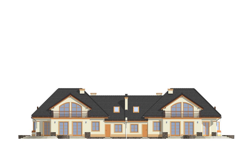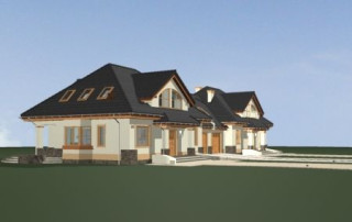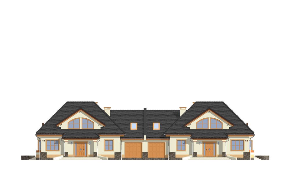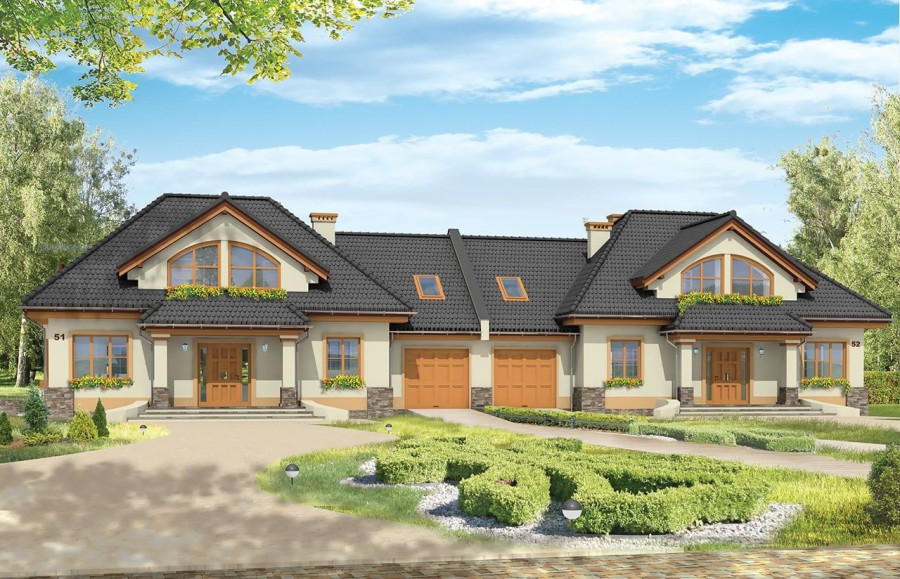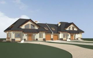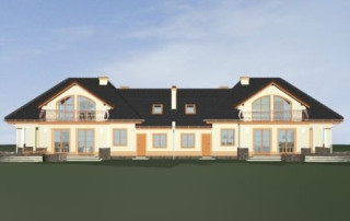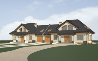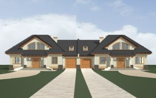 Projekt domu Faworyt 3 to trzecia odsłona popularnego projektu Faworyt, tym razem w postaci budynku bliźniaczego, dla dwóch rodzin. Dom mieści się na działce o szerokości 39,36 m. Na jedną połówkę potrzebna jest działka około 20 metrowa. Każda z połówek mieści na parterze salon z jadalnią, dodatkowy pokój, a na poddaszu trzy sypialnie. W projekcie domu Faworyt 3 wygospodarowano sporo miejsca na schowki, garderoby i szafy. Pracownia posiada projekt w odbiciu lustrzanym oraz projekt domu Faworyt 2. Zapraszamy!