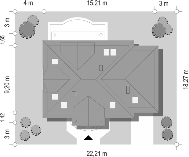 Niewielki, oszczędny dom parterowy spełniający potrzeby 2-3 osobowej rodziny. Program użytkowy podzielono na 2 strefy. Część dzienną tworzy obszerny salon z przylegającą kuchnią i spiżarnią. W części nocnej przewidziano sypialnię , łazienkę oraz dodatkowy pokój mogący pełnić funkcję pokoju dziecka lub gabinetu. W pobliżu wejścia zaprojektowano wydzieloną kotłownię. W jej sąsiedztwie od strony salonu przewidziano również miejsce na kominek. Zaletą projektu jest zadaszony taras dostępny z części dziennej, wydzielona spiżarnia w sąsiedztwie kuchni oraz podcień w strefie wejściowej do domu. Rozwiązania materiałowe nadają budynkowi spójny, nowoczesny charakter. Mak 2 jest projektem energooszczędnym, który idealnie wpisuje się na działki z wjazdem od północy.Ściany: 2-warstwowe - pustak ceramiczny + styropian Termo Organika, Stropy: drewniane, Dach: blacha na rąbek stojący Classic Ruukki, kąt nachylenia 30°