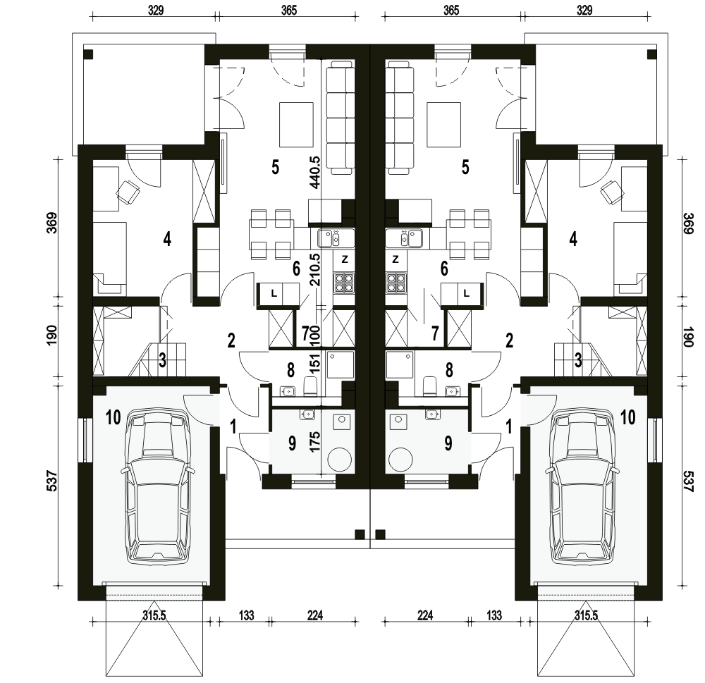 z garażem 1 st.
