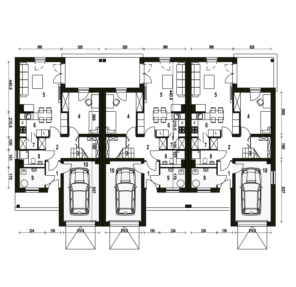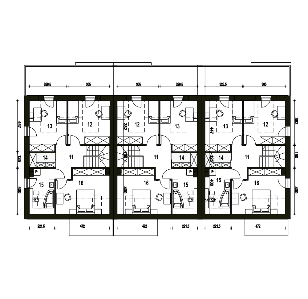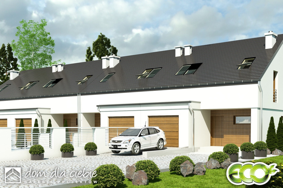 Pojedynczy segment Makolągwy to propozycja niedużego domu dedykowanego 4-5 osobowej rodzinie o prostej bryle i optymalnej funkcji. Dom wyposażony został w częściowo wbudowany w garaż, dostępny jest poprzez wiatrołap z wejściem do kotłowni. dalej mamy kuchnię ze spiżarnią, jadalnię oraz salon z kominkiem. Mamy tu również dodatkowy pokój mogący spełniać funkcję gabinetu lub pokoju gościnnego oraz niewielką łazienkę z natryskiem. Pod schodami wygospodarowano miejsce na szafy. Na piętrze zaprojektowano 3 sypialnie, garderobę oraz łazienkę. Makolągwa to przykład domu dla osób praktycznych z ekonomicznym podejściem do inwestycji.