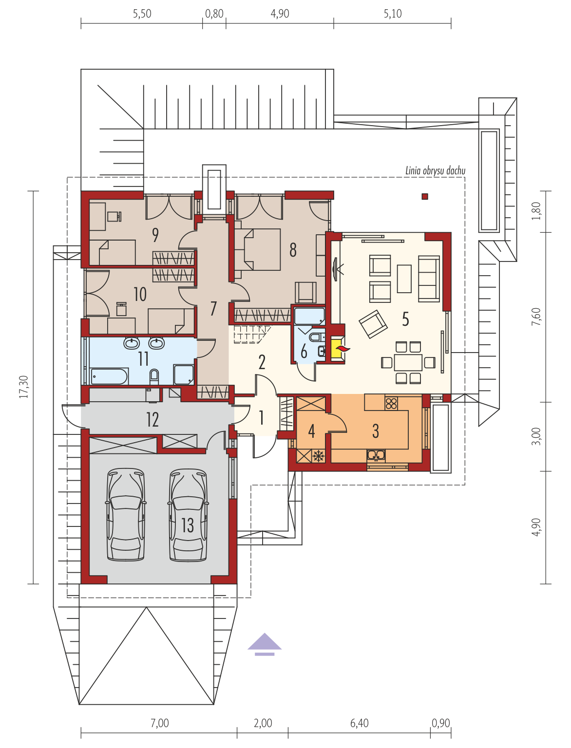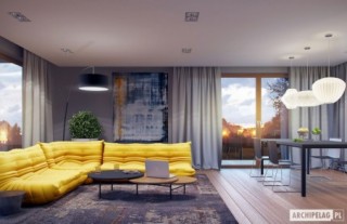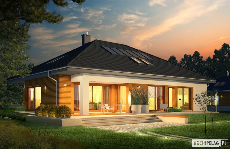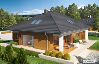 Standard MULTI-COMFORT: Dom spełnia standard MULTI-COMFORT Grupy Saint-Gobain. Komfort rozumiany jako wpływ środowiska, w którym mieszkamy na nasze samopoczucie i zdrowie. Dom realizuje tę ideę za pomocą właściwego połączenia wszystkich elementów funkcjonujących w budynku – odpowiedniego oświetlenia, właściwej wentylacji, konstrukcji ścian, dachu oraz instalacji, przy jednoczesnej trosce o środowisko naturalne. Najwyższą jakość produktów Saint-Gobain zapewniają marki: ISOVER, Rigips, Ecophon, PAM, Weber, Glass oraz Glasssolution. Charakterystyka: Dom parterowy z poddaszem do późniejszej adaptacji na cele mieszkalne, niepodpiwniczony, z garażem dwustanowiskowymPrzeznaczenie: Dom dla 3-4-osobowej rodziny Technologia i konstrukcja:Ściany zewnętrzne: murowane, dwuwarstwowe, bloczki keramzytobetonowe Termat 24 cm, ocieplenie wełna Isover 25 cmStrop: strop gęstożebrowy TerivaDach: konstrukcja drewniana, ocieplenie wełna mineralna 30 cm, dachówka płaska lub inna o podobnych parametrachInne: w przypadku adaptacji poddasza - schody wewnętrzne drewniane Rozwiązania instalacyjne:Ogrzewanie: kocioł gazowy, rozprowadzenie ciepła: grzejnikiWentylacja: grawitacyjna Wykończenie:Elewacje: tynk cienkowarstwowy mineralny w kolorze TO-PA001 z palety firmy Termo Organika, okładzina z płyty HPL z naturalną okleiną drewnianą firmy ProdemaStolarka: drewniana, PVC lub aluminiowa, drzwi wejściowe i brama garażowa firmy HörmannWersje - zapytaj o dostępność:- Marcel Multi-Comfort – wersja bez garażu- Marcel – wersja standardowa, bez garażu i z garażem dwustanowiskowym- Marcel II – dom w standardzie ENERGO ocieplenia przegród, systemy suchej zabudowy Rigips, inne wykończenie elewacji, bez garażu i z garażem dwustanowiskowym- Marcel III – podobny układ funkcjonalny i wykończenie elewacji, standard ENERGO ocieplenia przegród, bez garażu i z garażem dwustanowiskowym- Marcel III ENERGO PLUS – energooszczędna wersja Marcela III, pompa ciepła, ogrzewanie podłogowe, wentylacja mechaniczna, system solarny, bez garażu i z garażem dwustanowiskowym- Marcel IV – podobny układ funkcjonalny, ściany trójwarstwowe, inne wykończenie elewacji, bez garażu i z garażem dwustanowiskowym- Odbicie lustrzane do każdej wersji Istnieje techniczna możliwość:- podpiwniczenia budynku- wykonania budynku w technologii szkieletowej