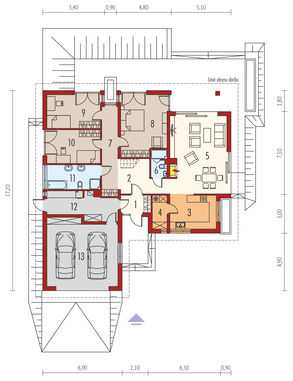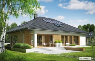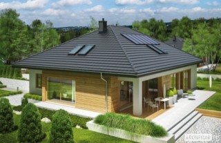 W projekcie zastosowano systemy zabudowy ścian działowych i sufitów podwieszanych Rigips.Charakterystyka: Dom parterowy z poddaszem do późniejszej adaptacji na cele mieszkalne, niepodpiwniczony, z garażem dwustanowiskowymPrzeznaczenie: Dom dla 3-4-osobowej rodziny Technologia i konstrukcja:Ściany zewnętrzne: murowane, dwuwarstwowe, beton komórkowy firmy H+H 24 cm, ocieplenie 20 cmŚciany wewnętrzne: nośne murowane, beton komórkowy firmy H+H 24 cm, działowe Rigips 12 cmStrop: strop gęstożebrowy TerivaDach: konstrukcja drewniana, ocieplenie wełna mineralna 30 cm, dachówka płaska lub inna o podobnych parametrach Inne: w przypadku adaptacji poddasza - schody wewnętrzne drewniane Rozwiązania instalacyjne:Ogrzewanie: kocioł gazowy, rozprowadzenie ciepła: grzejnikiWentylacja: grawitacyjna Wykończenie:Elewacje: tynk cienkowarstwowy mineralny w kolorze TO-PA001 z palety firmy Termo Organika, okładzina z płyty HPL z naturalną okleiną drewnianą firmy ProdemaStolarka: drewniana, PVC lub aluminiowa, drzwi wejściowe i brama garażowa firmy HörmannWersje - zapytaj o dostępność:- Marcel II – wersja bez garażu- Marcel – wersja standardowa, bez garażu i z garażem dwustanowiskowym- Marcel Multi-Comfort – dom w standardzie Multi-Comfort Grupy Saint-Gobain, bez garażu i z garażem dwustanowiskowym- Marcel III – podobny układ funkcjonalny i wykończenie elewacji, standard ENERGO ocieplenia przegród, bez garażu i z garażem dwustanowiskowym- Marcel III ENERGO PLUS – energooszczędna wersja Marcela III, pompa ciepła, ogrzewanie podłogowe, wentylacja mechaniczna, system solarny, bez garażu i z garażem dwustanowiskowym- Marcel IV – podobny układ funkcjonalny, ściany trójwarstwowe, inne wykończenie elewacji, bez garażu i z garażem dwustanowiskowym- Odbicie lustrzane do każdej wersji Istnieje techniczna możliwość:- podpiwniczenia budynku- wykonania budynku w technologii szkieletowej Atuty projektu okiem architekta:- Ścianki wewnętrzne w technologii lekkiej umożliwiają dowolną aranżację wnętrz- Funkcjonalne i ergonomiczne wnętrze z podziałem na strefę dzienną i nocną- Poddasze do późniejszej adaptacji na cele mieszkalne- Otwarta przestrzeń strefy dziennej integrująca życie rodzinne- Trzy sypialnie z wyjściem na taras- Zacieniony taras w podcieniu- Duże pomieszczenie kotłowni pozwala na zastosowanie dowolnego źródła ogrzewania