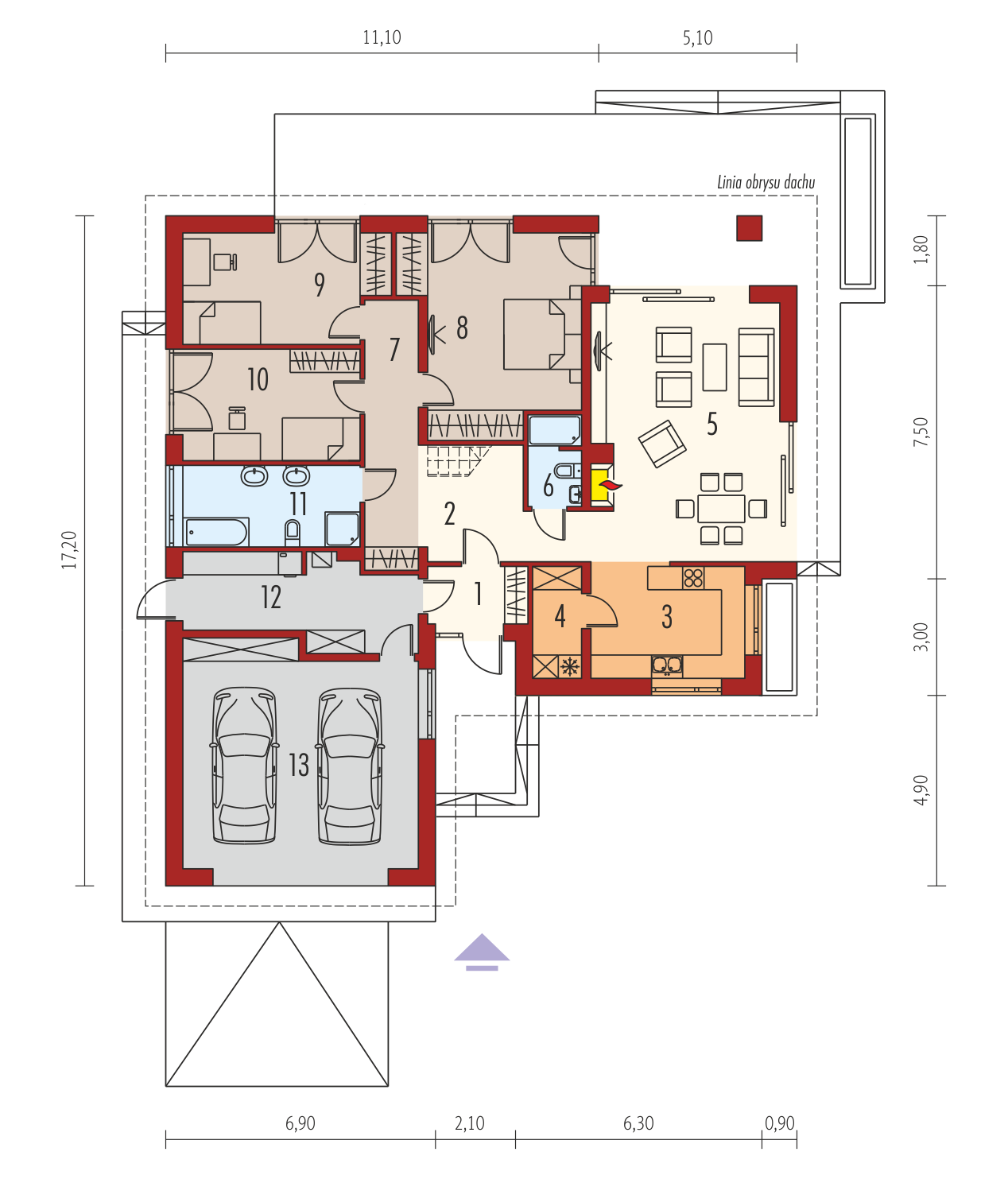 Charakterystyka: Dom parterowy z poddaszem do późniejszej adaptacji na cele mieszkalne, niepodpiwniczony, z garażem dwustanowiskowymPrzeznaczenie: Dom dla 3-4-osobowej rodziny Technologia i konstrukcja:Ściany zewnętrzne: murowane, dwuwarstwowe, beton komórkowy firmy H+H 24 cm, ocieplenie 20 cmStrop: strop gęstożebrowy TerivaDach: konstrukcja drewniana, ocieplenie wełna mineralna 30 cm, dachówka płaska lub inna o podobnych parametrach Inne: w przypadku adaptacji poddasza - schody wewnętrzne drewniane Rozwiązania instalacyjne:Ogrzewanie: kocioł gazowy, rozprowadzenie ciepła: grzejnikiWentylacja: grawitacyjna Wykończenie:Elewacje: tynk cienkowarstwowy mineralny w kolorze TO-PA001 z palety firmy Termo Organika, okładzina z płyty HPL z naturalną okleiną drewnianą firmy ProdemaStolarka: drewniana, PVC lub aluminiowa, drzwi wejściowe i brama garażowa firmy HörmannWersje - zapytaj o dostępność:- Marcel III – wersja bez garażu- Marcel III ENERGO PLUS – energooszczędna wersja Marcela III, pompa ciepła, ogrzewanie podłogowe, wentylacja mechaniczna, system solarny, bez garażu i z garażem dwustanowiskowym- Marcel – wersja standardowa, podobny układ funkcjonalny, bez garażu i z garażem dwustanowiskowym- Marcel Multi-Comfort – dom w standardzie Multi-Comfort Grupy Saint-Gobain, podobny układ funkcjonalny, bez garażu i z garażem dwustanowiskowym- Marcel II – podobny układ funkcjonalny, dom w standardzie ENERGO ocieplenia przegród, systemy suchej zabudowy Rigips, inne wykończenie elewacji, bez garażu i z garażem dwustanowiskowym- Marcel IV – podobny układ funkcjonalny, ściany trójwarstwowe, inne wykończenie elewacji, bez garażu i z garażem dwustanowiskowym- Odbicie lustrzane do każdej wersji Istnieje techniczna możliwość:- podpiwniczenia budynku- wykonania budynku w technologii szkieletowej Atuty projektu okiem architekta:- Subtelna kompozycja elewacji w ciepłym kolorze beżu, szarości i bieli- Poddasze do późniejszej adaptacji na cele mieszkalne- Funkcjonalne i ergonomiczne wnętrze z podziałem na strefę dzienną i nocną- Otwarta przestrzeń strefy dziennej- Trzy sypialnie z wyjściem na taras- Zacieniony taras w podcieniu- Duże pomieszczenie kotłowni pozwala na zastosowanie dowolnego źródła ogrzewania