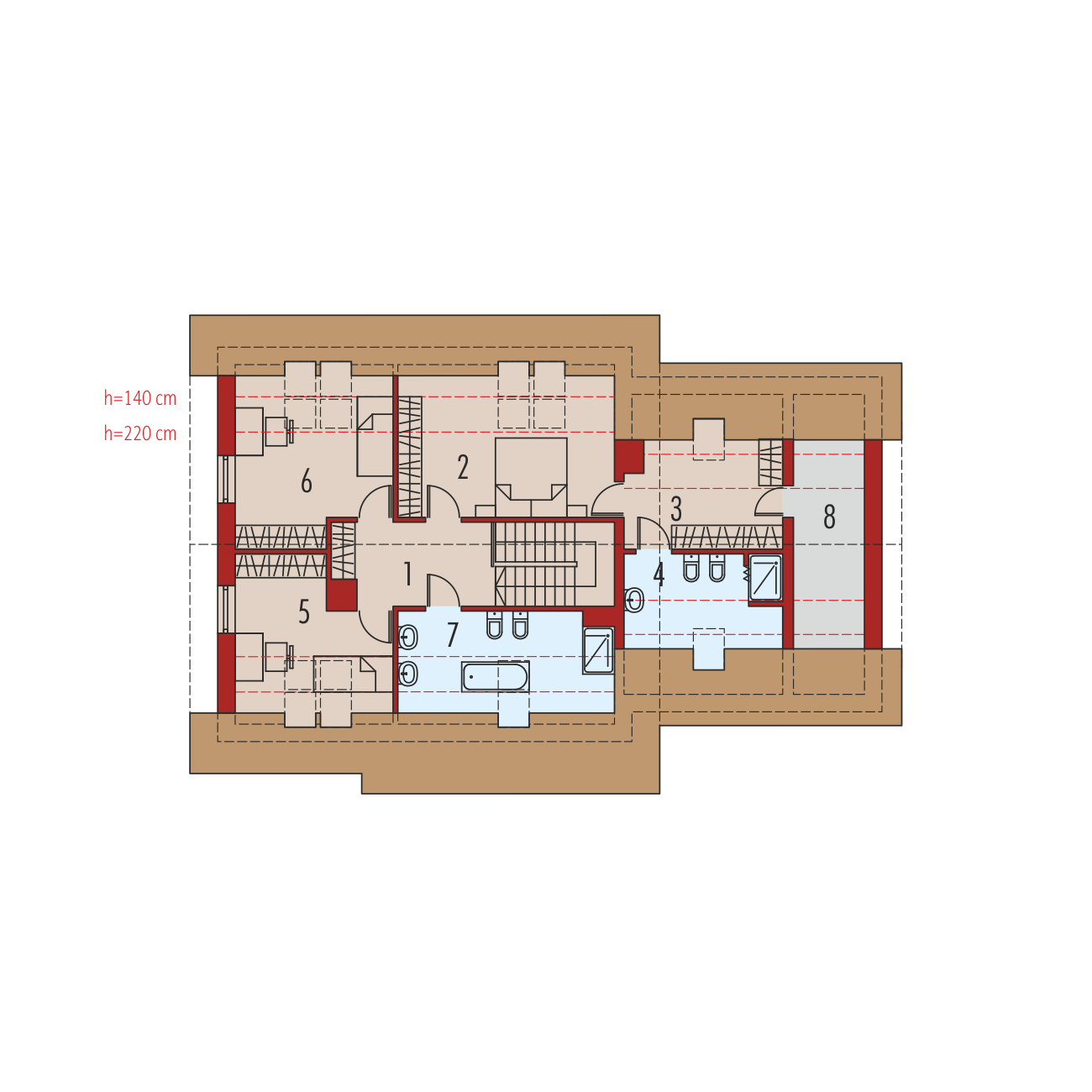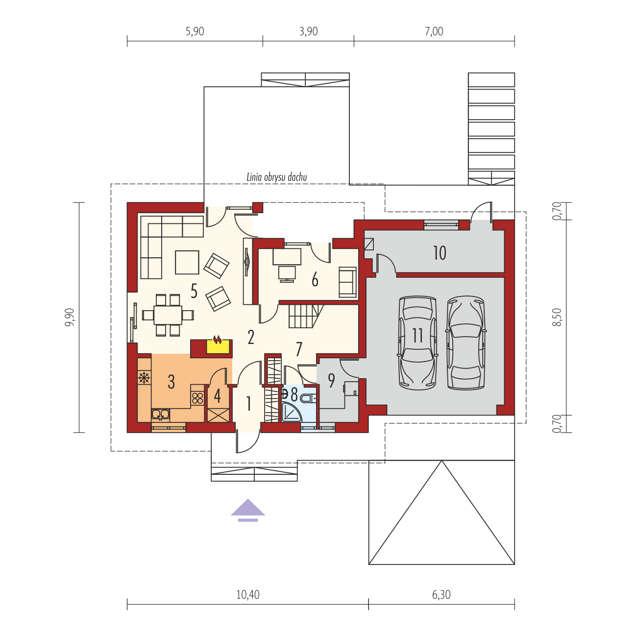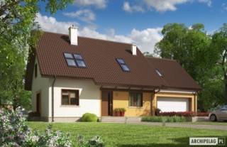 Charakterystyka: dom parterowy z poddaszem użytkowym, niepodpiwniczony, z garażem dwustanowiskowymPrzeznaczenie: dom dla 3-5-osobowej rodzinyTechnologia i konstrukcja:Fundamenty: ławy, bloczki betonowe 24 cm, ocieplenie styropian 15 cmŚciany zewnętrzne: murowane, dwuwarstwowe, beton komórkowy 24 cm, ocieplenie 20 cmŚciany wewnętrzne: murowane, ściany nośne 24 cm, ścianki działowe 12 cmPodłoga na gruncie: płyta betonowa, ocieplenie styropian 15 cmStrop: strop międzypiętrowy gęstożebrowy TerivaDach: konstrukcja drewniana, ocieplenie wełna mineralna 30 cm, dachówka ceramiczna RöbenRozwiązania instalacyjne: Ogrzewanie: kocioł gazowy, rozprowadzenie ciepła: grzejniki Wentylacja: grawitacyjna Wykończenie:Elewacja: tynk cienkowarstwowy mineralny i okładzina z płyty HPL z naturalną okleiną drewnianą firmy ProdemaStolarka: drewniana, PCV lub aluminiowa, drzwi wejściowe i brama garażowa firmy HörmannOkna połaciowe: rozwiązania technologiczne firmy VELUX. Pobierz ekspercki poradnik VELUX i dowiedz się jak wybrać okna dachoweWersje - zapytaj o dostępność:- Marcin III – z garażem jednostanowiskowym- Marcin – inne wykończenie elewacji, z garażem jedno- lub dwustanowiskowym- Marcin II – z tarasem w miejscu poddasza nad garażem, mniejsza powierzchnia użytkowa, z garażem jedno- lub dwustanowiskowym- Odbicie lustrzane do każdej wersjiIstnieje techniczna możliwość:- podpiwniczenia budynku- zbliźniaczeniaAtuty projektu okiem architekta:- Nowoczesny i atrakcyjny wygląd połączony z tradycyjną formą- Znakomite parametry cieplne- Kuchnia z praktyczną spiżarnią- Wygodna strefa nocna zaplanowana na poddaszu- Główna sypialnia z łazienką i garderobą- Funkcjonalne szafy wnękowe- Garaż oddzielony termicznie od ogrzewanej części budynku- Przestronna strefa gospodarcza: duże pomieszczenia kotłowni i gospodarcze, strych na zapleczu sypialni