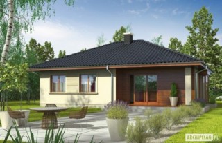 Uwaga! Przedstawione wizualizacje prezentują wersję domu z dachem o kącie nachylenia 25°Charakterystyka: Dom parterowy, niepodpiwniczonyPrzeznaczenie: Dom dla 3-4-osobowej rodziny Technologia i konstrukcja:Ściany zewnętrzne: murowane, dwuwarstwowe, beton komórkowy 24 cm, ocieplenie 12 cmŚciany wewnętrzne: nośne i działowe murowane, cegła wapienno-piaskowa 24 cm i 12 cmStrop: gęstożebrowy Teriva, ocieplenie wełna mineralna 25 cmDach: konstrukcja drewniana, dachówka ceramiczna Röben, więźba dachowa dostępna również w systemie prefabrykacji drewnianej Rozwiązania instalacyjne:Ogrzewanie: kocioł gazowy kondensacyjny, rozprowadzenie ciepła: grzejnikiWentylacja: grawitacyjna Wykończenie:Elewacje: tynk cienkowarstwowy mineralny, okładzina drewniana i kamiennaStolarka: drewniana, PVC lub aluminiowa, drzwi wejściowe firmy HörmannOtoczenie: płyty tarasowe firmy Libet, system tarasowy ProDeck - deska kompozytowa Terra w kolorze orzech Wersje domów w serii Margo - zapytaj o dostępność: - Margo – wersja podstawowa, dom parterowy, 3 sypialnie, dach o kącie nachylenia 25°, różne wersje garaży: bez garażu, z garażem jedno- lub dwustanowiskowym - Margo Mocca – inna propozycja wykończenia materiałowo-kolorystycznego elewacji, różne wersje garaży - Margo MULTI-COMFORT – dom z rozwiązaniami materiałowo-kolorystycznymi Grupy Saint-Gobain, różne wersje garaży - Margo (30°) – wersje z dachem o kącie nachylenia 30° i dodatkową przestrzenią strychową na poddaszu, różne wersje garaży - każda wersja z inną propozycją wykończenia elewacji - odbicie lustrzane do wszystkich wersji Wszystkie wersje domów mozliwe w dwóch standardach/wariantach instalacyjnych: - STANDARD: piec gazowy kondensacyjny, grzejniki, wentylacja grawitacyjna - ENERGO PLUS: pompa ciepła, ogrzewanie podłogowe, wentylacja mechaniczna, dodatkowo panele fotowoltaiczneIstnieje techniczna możliwość:- podpiwniczenia budynku- wykonania budynku w technologii szkieletowej