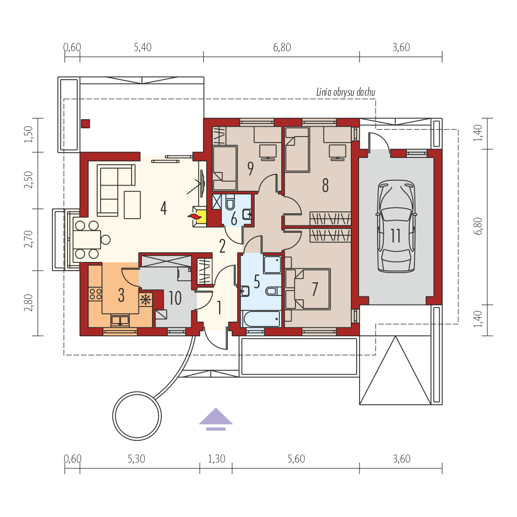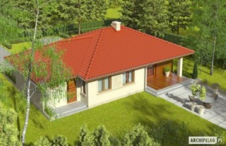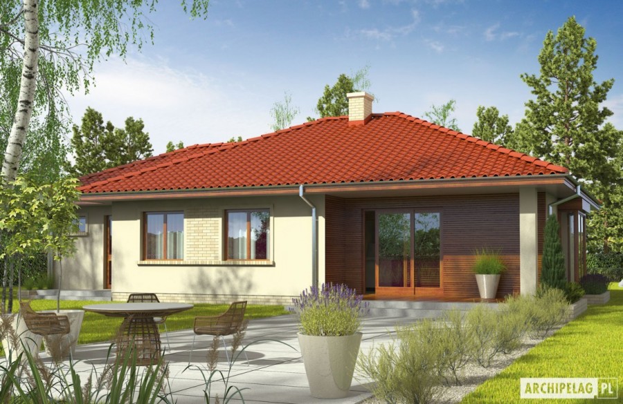 Uwaga! Przedstawione wizualizacje prezentują wersję domu z dachem o kącie nachylenia 25°Charakterystyka: Dom parterowy, niepodpiwniczony, z garażem jednostanowiskowymPrzeznaczenie: Dom dla 3-4-osobowej rodziny Technologia i konstrukcja:Ściany zewnętrzne: murowane, dwuwarstwowe, beton komórkowy 24 cm, ocieplenie 12 cmŚciany wewnętrzne: nośne i działowe murowane, cegła wapienno-piaskowa 24 cm i 12 cmStrop: gęstożebrowy Teriva, ocieplenie wełna mineralna 28 cmDach: konstrukcja drewniana, dachówka ceramiczna Röben, więźba dachowa dostępna również w systemie prefabrykacji drewnianej Rozwiązania instalacyjne:Ogrzewanie: kocioł gazowy kondensacyjny, rozprowadzenie ciepła: grzejnikiWentylacja: grawitacyjna Wykończenie:Elewacje: tynk cienkowarstwowy mineralny, okładzina drewniana i klinkierowaStolarka: drewniana, PVC lub aluminiowa, drzwi wejściowe i brama garażowa firmy HörmannOtoczenie: płyty tarasowe firmy Libet, system tarasowy ProDeck - deska kompozytowa Terra w kolorze orzech Wersje domów w serii Margo - zapytaj o dostępność: - Margo – wersja podstawowa, dom parterowy, 3 sypialnie, dach o kącie nachylenia 25°, różne wersje garaży: bez garażu, z garażem jedno- lub dwustanowiskowym - Margo Mocca – inna propozycja wykończenia materiałowo-kolorystycznego elewacji, różne wersje garaży - Margo MULTI-COMFORT – dom z rozwiązaniami materiałowo-kolorystycznymi Grupy Saint-Gobain, różne wersje garaży - Margo (30°) – wersje z dachem o kącie nachylenia 30° i dodatkową przestrzenią strychową na poddaszu, różne wersje garaży - każda wersja z inną propozycją wykończenia elewacji - odbicie lustrzane do wszystkich wersji Wszystkie wersje domów w dwóch standardach/wariantach instalacyjnych: - STANDARD: piec gazowy kondensacyjny, grzejniki, wentylacja grawitacyjna - ENERGO PLUS: pompa ciepła, ogrzewanie podłogowe, wentylacja mechaniczna, dodatkowo panele fotowoltaiczneIstnieje techniczne możliwość:- podpiwniczenia budynku- wykonania budynku w technologii szkieletowej