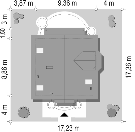 Projekt domu Mariola Polo, tak jak Mariola, należy do projektów domów z użytkowym poddaszem, połączonych z garażem i kotłownią w jedną bryłę. Kalenica dwuspadowego dachu jest równoległa do drogi dojazdowej. Wśród domów średniej wielkości uwagę zwraca fantazyjny narożny ryzalit zbudowany na planie ośmioboku. Przypomina on rozwiązania Rodziny Majki, podobnie jak program funkcjonalny parteru: kompletne mieszkanie z niewielką łazienką wkomponowaną w przestrzeń pod trójbiegowymi schodami i gabinetem przy salonie. Na drugiej, rozdzielonej różnicą poziomów, kondygnacji zaproponowano cztery pokoje i garderobę przy głównej sypialni nad garażem. Projekty z Rodziny Marioli mają jednak nieco prostszą bryłę niż Maja i Majka. Wejściowy podcień zastąpił balkon, a lukarna akcentująca front jest rozwiązana podobnie jak w projektach z Rodziny Tarota. Projekt domu Mariola Polo oferuje więcej miejsca niż Mariola, głównie dzięki powiększeniu dodatkowego pokoju przy salonie ryzalitem, który na poddaszu zajmuje duża, piękna łazienka oświetlona symetryczną do frontowej lukarną. Większa jest także otwarta przestrzeń pokoju dziennego i kuchni.