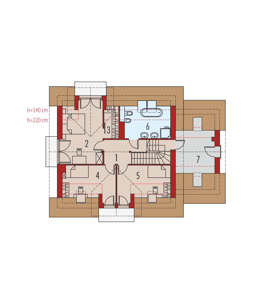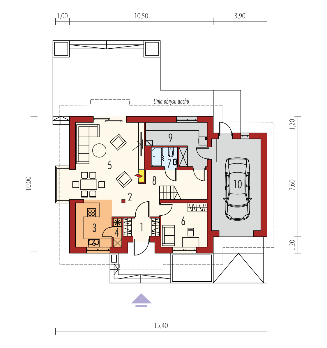 Charakterystyka: Dom parterowy z poddaszem użytkowym, niepodpiwniczony, z garażem jednostanowiskowym Przeznaczenie: Dom dla 3-5-osobowej rodziny Technologia i konstrukcja: Fundamenty: ławy, bloczki betonowe 24 cm, ocieplenie styropian 15 cm Ściany zewnętrzne: murowane, dwuwarstwowe, pustaki ceramiki poryzowanej 24 cm, ocieplenie 20 cm Ściany wewnętrzne: murowane, pustaki ceramiki poryzowanej, ściany nośne 24 cm Podłoga na gruncie: płyta betonowa, ocieplenie styropian 15 cm Strop: strop międzypiętrowy gęstożebrowy Teriva Dach: konstrukcja drewniana, ocieplenie wełna mineralna 30 cm, dachówka płaska Bergamo firmy Roben Inne: schody wewnętrzne drewniane Rozwiązania instalacyjne: Ogrzewanie: kocioł gazowy, rozprowadzenie ciepła: grzejniki Wentylacja: grawitacyjna Wykończenie: Elewacje: tynk cienkowarstwowy mineralny i okładzina z płyty HPL z naturalną okleiną drewnianą firmy Prodema Stolarka: drewniana, PVC lub aluminiowa, drzwi wejściowe i brama garażowa firmy Hörmann, rolety zewnętrzne w systemie CleverBox firmy BeClever Okna połaciowe: rozwiązania technologiczne firmy FAKRO, wyłaz dachowy FAKRO Inne: żaluzje zewnętrzne drewnianeWersje - zapytaj o dostępność: - Marisa V - bez garażu lub z garażem dwustanowiskowym - Marisa – podobny układ funkcjonalny, inne wykończenie elewacji, bez wykusza, różne wersje garaży - Marisa II – podobny układ funkcjonalny, inne wykończenie elewacji, bez wykusza, różne wersje garaży - Marisa III - podobny układ funkcjonalny, inne wykończenie elewacji, dach bez lukarn, różne wersje garaży - Marisa IV – podobny układ funkcjonalny, inne wykończenie elewacji, bez wykusza, różne wersje garaży - Odbicie lustrzane do każdej wersji Istnieje techniczna możliwość: - podpiwniczenia budynku - wykonania budynku w technologii szkieletowej