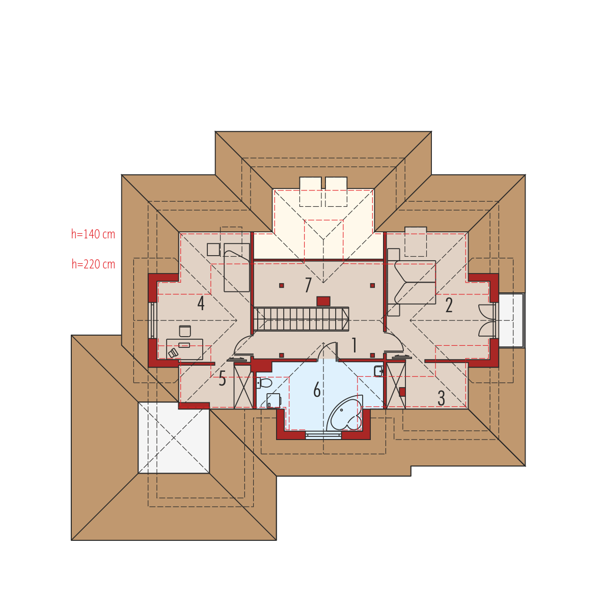 Charakterystyka: Dom parterowy z poddaszem użytkowym, niepodpiwniczony, z garażem dwustanowiskowym Przeznaczenie: Dom dla 4-5 osobowej rodzinyTechnologia i konstrukcja: Ściany zewnętrzne: murowane Strop: gęstożebrowy Dach: konstrukcja drewniana, dachówka cementowa lub ceramiczna Inne: schody wewnętrzne drewnianeRozwiązania instalacyjne: Ogrzewanie: kocioł gazowy, rozprowadzenie ciepła: grzejniki Wentylacja: grawitacyjna Wykończenie: Elewacje: tynk strukturalny, cokół i narożniki z kamienia Stolarka: drewniana lub PCVWersje - zapytaj o dostępność: - Marysia G1 – mniejsza wersja, bez antresoli, garaż jednostanowiskowy - Marysia III G2 – większa powierzchnia, bez antresoli, garaż dwustanowiskowy - odbicie lustrzane