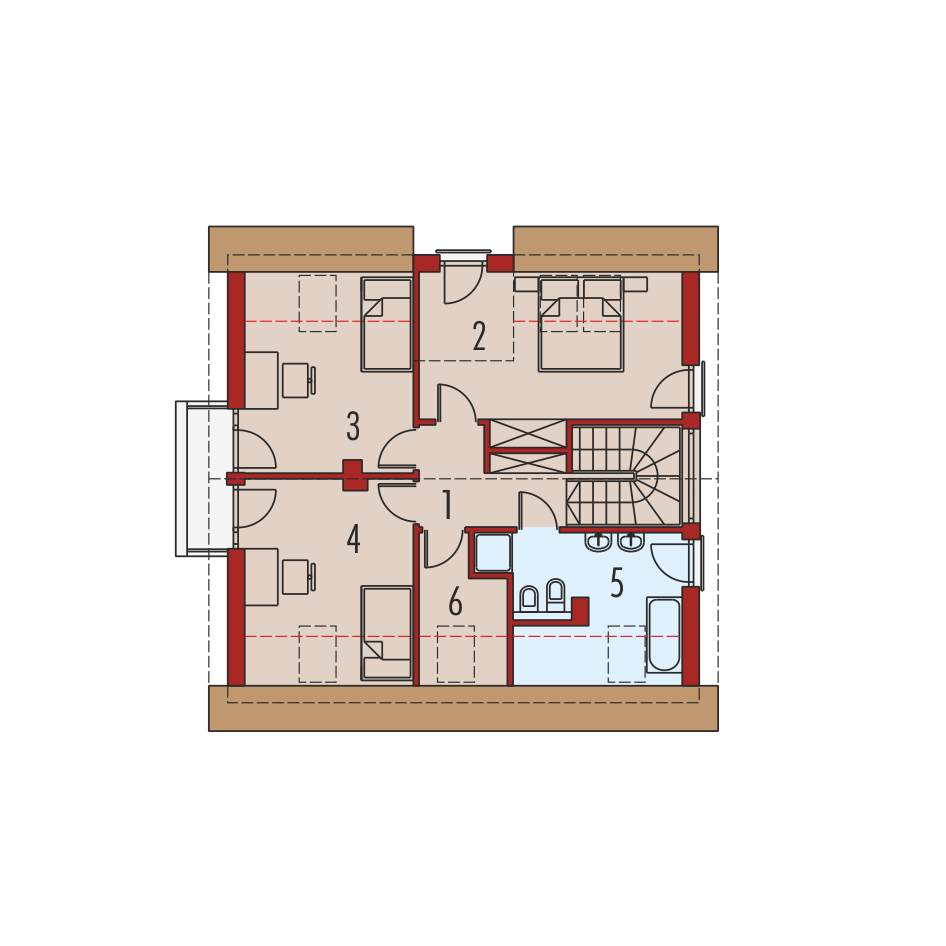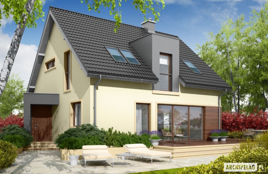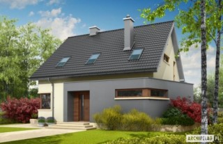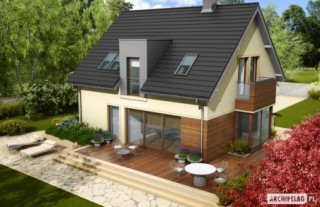 Charakterystyka: Dom parterowy z poddaszem użytkowym, niepodpiwniczony Przeznaczenie: Dom dla 3-4 osobowej rodziny Technologia i konstrukcja: Ściany zewnętrzne: murowane Strop: gęstożebrowy Dach: konstrukcja drewniana, ocieplenie wełna mineralna, dachówka cementowa IBF Inne: schody wewnętrzne drewnianeRozwiązania instalacyjne: Ogrzewanie: kocioł gazowy, rozprowadzenie ciepła: grzejniki Wentylacja: grawitacyjna Wykończenie: Elewacje: tynk mineralny i okładzina z płyty HPL z naturalną okleiną drewnianą firmy Prodema, cokół kamienny Stolarka: drewniana lub PC, drzwi wejściowe firmy HörmannWersje - zapytaj o dostępność: - Mati G1 – wersja z garażem jednostanowiskowym - odbicia lustrzane do wszystkich wersji Istnieje techniczna możliwość: - podpiwniczenia budynku