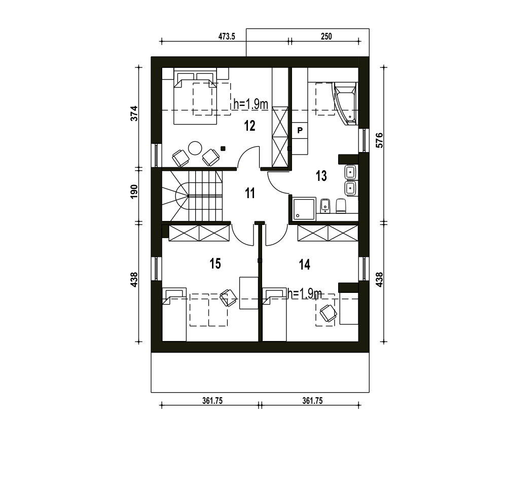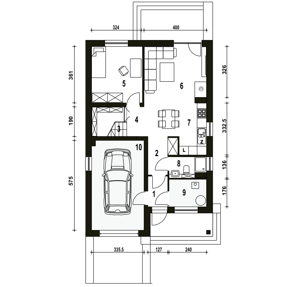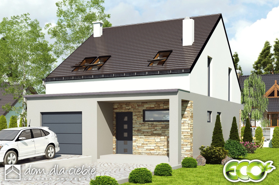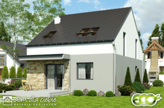 Propozycja Mazurek to niewielki, komfortowy dom z garażem na jedno auto. Projekt poprzez prostą konstrukcję i zwartą bryłę stawia na ekonomię zarówno podczas budowy jak i w eksploatacji. Mazurek dedykowany jest dla 4-5 osobowej rodziny. Parter budynku to salon połączony z kuchnią i jadalnią, pokój mogący pełnić rolę gabinetu lub pokoju gościnnego, nieduża łazienka, pomieszczenie techniczne z piecem. Pod schodami prowadzącymi na piętro wygospodarowano miejsce na spiżarnię albo garderobę. Piętro to 3 sypialnie, łazienka z miejscem na pralkę. Projekt przewidziany jest do zabudowy wolnostojącej, bliźniaczej oraz szeregowej.fundamenty: BETONOWE ściany zewnętrzne: POROTHERM+STYROPIAN TERMO ORGANIKA rodzaj stropu: TERIVA I elewacje: TYNK STRUKTURALNY, OKŁADZINA KLINKIEROWA pokrycie dachu: DACHÓWKA CEMENTOWA, CERAMICZNA lub BLACHA DACHÓWKO PODOBNA