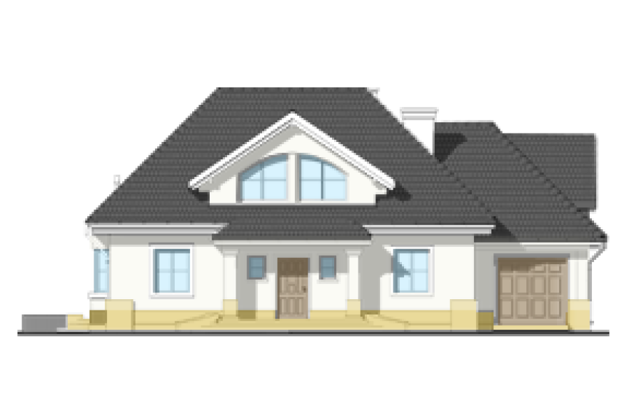 Mazurek 2 to nieduży dom dla cztero-pięcioosobowej rodziny. Budynek zaprojektowano w taki sposób, aby rodzina mogła mieszkać mając do dyspozycji tylko parter - możliwe jest wykończenie poddasza w drugim etapie budowy. Na parterze, prócz salonu znajdują się dwa dodatkowe pokoje i łazienka. Na poddaszu kryją się dodatkowe dwa duże pokoje z drugą łazienką oraz strych nad garażem, który może służyć jako dodatkowy pokój. W parterze obok głównej bryły domu zaprojektowano dodatkowo garaż. Z salonu można dostać się do ogrodu przez duży zadaszony taras. Pracownia dysponuje również projektem w odbiciu lustrzanym.