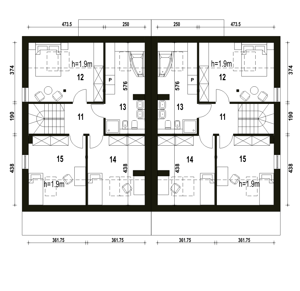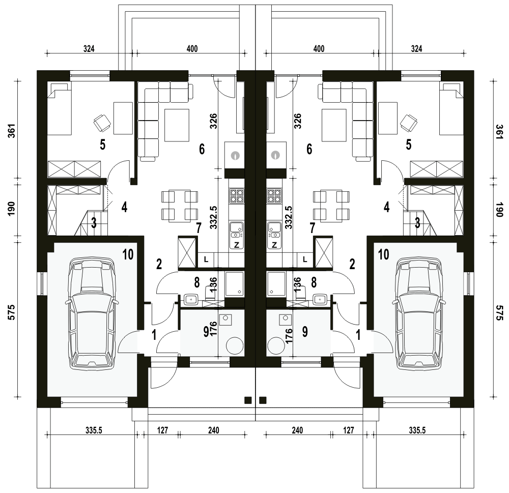(Uwaga: projekty typu bliźniak oferujemy jako domy dwulokalowe, projekt można zamówić również w zabudowie bliźniaczej) Opis dotyczy jednego segmentu: Propozycja Mazurek to niewielki, komfortowy dom z garażem na jedno auto. Projekt poprzez prostą konstrukcję i zwartą bryłę stawia na ekonomię zarówno podczas budowy jak i w eksploatacji. Mazurek dedykowany jest dla 4-5 osobowej rodziny. Parter budynku to salon połączony z kuchnią i jadalnią, pokój mogący pełnić rolę gabinetu lub pokoju gościnnego, nieduża łazienka, pomieszczenie techniczne z piecem. Pod schodami prowadzącymi na piętro wygospodarowano miejsce na spiżarnię albo garderobę. Piętro to 3 sypialnie, łazienka z miejscem na pralkę. Projekt przewidziany jest do zabudowy wolnostojącej, bliźniaczej oraz szeregowej.