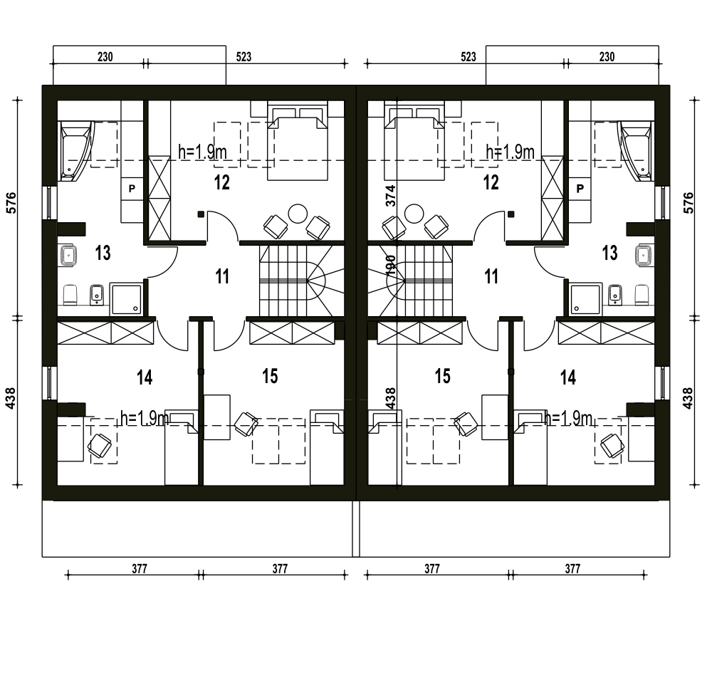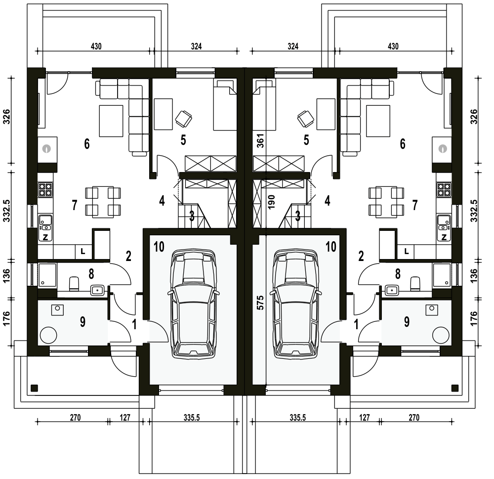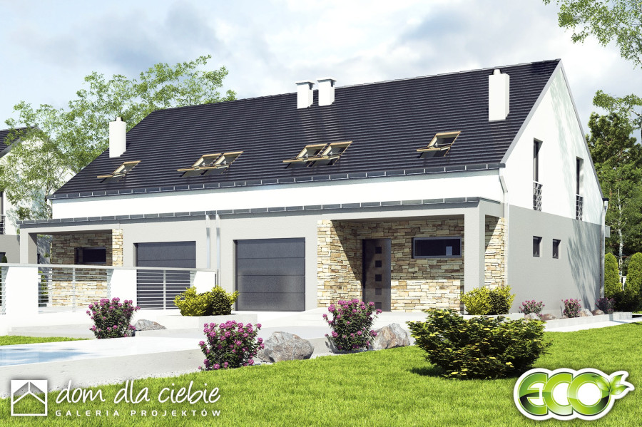 (Uwaga: projekty typu bliźniak oferujemy jako domy dwulokalowe, projekt można zamówić również w zabudowie bliźniaczej) Opis dotyczy jednego segmentu: Propozycja Mazurek II to niewielki, komfortowy dom z garażem na jedno auto. Projekt poprzez prostą konstrukcję i zwartą bryłę stawia na ekonomię zarówno podczas budowy jak i w eksploatacji. Mazurek II dedykowany jest dla 4-5 osobowej rodziny. Parter budynku to salon połączony z kuchnią i jadalnią, pokój mogący pełnić rolę gabinetu lub pokoju gościnnego, nieduża łazienka, pomieszczenie techniczne z piecem. Pod schodami prowadzącymi na piętro wygospodarowano miejsce na spiżarnię albo garderobę. Piętro to 3 sypialnie, łazienka z miejscem na pralkę. Projekt przewidziany jest do zabudowy wolnostojącej, bliźniaczej oraz szeregowej.