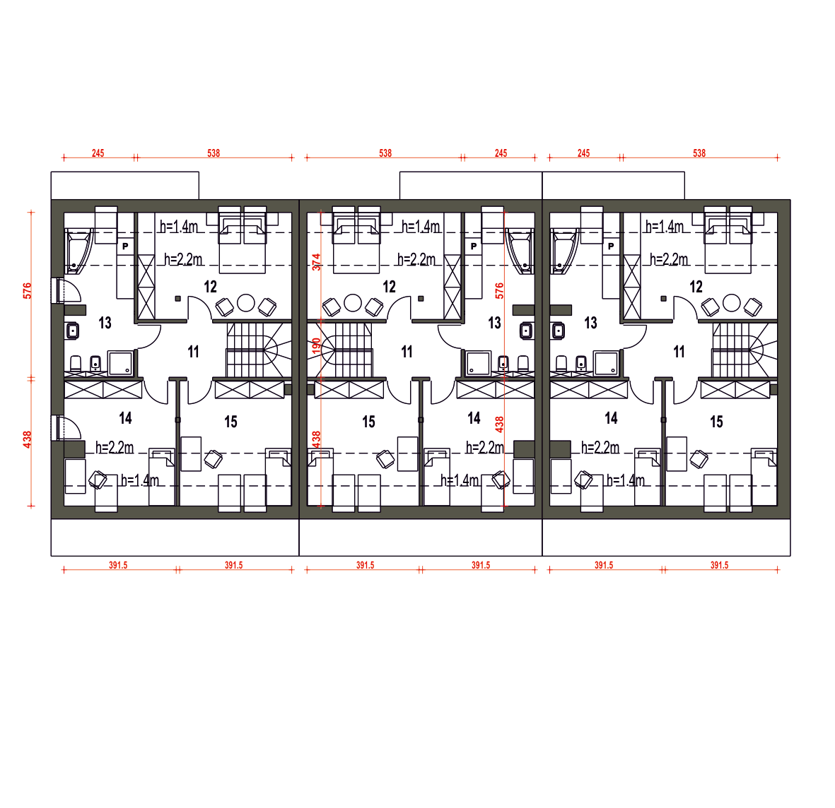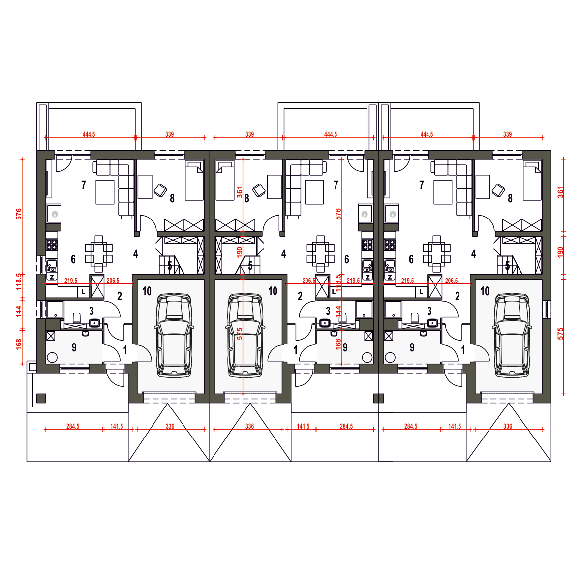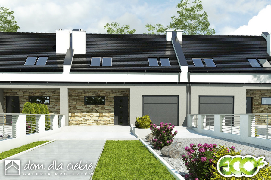 Opis dotyczy jednego segmentu: Propozycja Mazurek III to niewielki, komfortowy dom z garażem na jedno auto. Projekt poprzez prostą konstrukcję i zwartą bryłę stawia na ekonomię zarówno podczas budowy jak i w eksploatacji. Mazurek III dedykowany jest dla 4-5 osobowej rodziny. Parter budynku to salon połączony z kuchnią i jadalnią, pokój mogący pełnić rolę gabinetu lub pokoju gościnnego, nieduża łazienka, pomieszczenie techniczne z piecem. Pod schodami prowadzącymi na piętro wygospodarowano miejsce na spiżarnię albo garderobę. Piętro to 3 sypialnie, łazienka z miejscem na pralkę. Projekt przewidziany jest do zabudowy wolnostojącej, bliźniaczej oraz szeregowej.