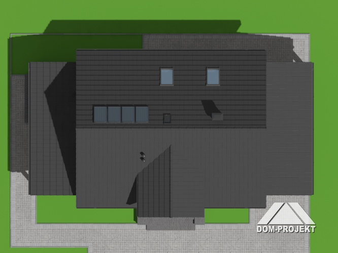 Dom z użytkowym poddaszem, niepodpiwniczony, dla 4-osobowej rodziny. Pokój dzienny z kominkiem i wyjściem na taras. Kuchnia i jadalnia zlokalizowane od strony frontowej. Na parterze znajduje się mała łazienka, schowek pod schodami oraz garaż. Na poddaszu mieszczą się trzy sypialnie oraz łazienka.