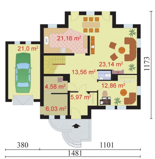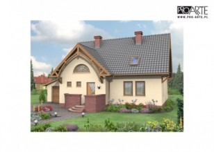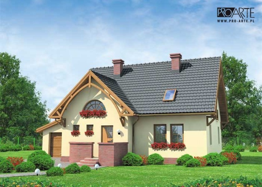 MILANO- dom jednorodzinny z garażem To jeden z robiących najlepsze wrażenie na Inwestorach projektów w naszej ofercie. Zwraca na siebie uwagę innowacyjnymi wykończeniami i wstawkami, a także półokrągłym oknem. Samo wejście, gustowny ganek, z ładnym murkiem, świetnie komponujący się z cokołem, przykuwa uwagę swoją wyjątkową elegancją i urodą. Półokrągłe schody ganku korespondują ze znajdującym się nad gankiem oknem w podobnym kształcie.