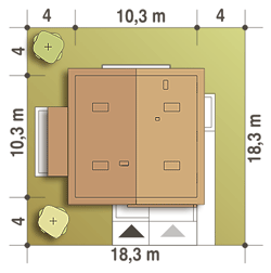 Dom z użytkowym poddaszem, dla 4-5-osobowej rodziny. Na parterze znajdują się: pokój dzienny połączony z jadalnią, kuchnia, łazienka, pokój gościnny/gabinet oraz duże pomieszczenie gospodarcze dostępne z garażu dwustanowiskowego. Na poddaszu zaprojektowano trzy pokoje, przestronną łazienkę oraz obszerny strych, który można zaadaptować na dodatkowy pokój. Projekt dostępny w wersji z garażem jednostanowiskowym - Milena. Projekt może być wykorzystany do zabudowy bliźniaczej.
