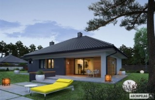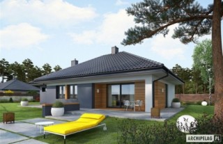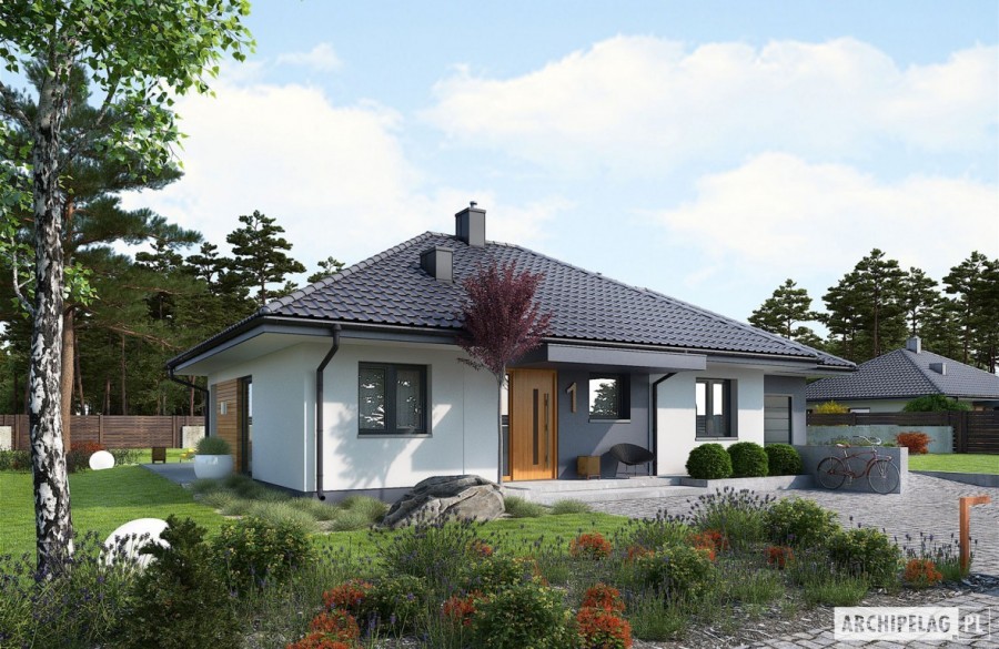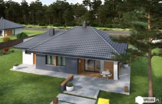 Charakterystyka: Dom parterowy, niepodpiwniczony, z garażem jednostanowiskowym Przeznaczenie: Dom dla 2-4-osobowej rodzinyTechnologia i konstrukcja: Ściany zewnętrzne: murowane, dwuwarstwowe, beton komórkowy firmy H+H 24 cm, ocieplenie styropian Termo Organika 20 cm Ściany wewnętrzne: nośne i działowe murowane, beton komórkowy firmy H+H 24 cm i 12 cm Strop: gęstożebrowy Teriva, ocieplenie wełna mineralna Isover 30 cm Dach: konstrukcja drewniana, dachówka ceramiczna firmy Röben, więźba dachowa dostępna również w systemie prefabrykacji drewnianejRozwiązania instalacyjne:Ogrzewanie: kocioł gazowy kondensacyjny firmy Viessmann, rozprowadzenie ciepła: grzejniki firmy PurmoWentylacja: grawitacyjnaOZE: kolektory słoneczne firmy ViessmannDodatkowo: stacja uzdatniania wody firmy ViessmannWykończenie:Elewacje: tynk cienkowarstwowy mineralny w kolorze TO-PA001 i TO-GY011 z palety firmy Termo Organika, okładzina drewnianaStolarka: drewniana, PVC lub aluminiowa, rolety zewnętrzne w systemie CleverBox firmy BeClever, drzwi wejściowe i brama garażowa firmy HörmannOtoczenie: kostka betonowa i płyty tarasowe firmy Libet, system tarasowy ProDeck - deska kompozytowa Terra w kolorze orzechWersje domów w serii Mini 1 - zapytaj o dostępność: - Mini 1 – wersja podstawowa, dach wielospadowy o kącie nachylenia 30° - Mini 1 (wiązary) – taki sam układ funkcjonalny, system suchej zabudowy ścian działowych Rigips, wiązary prefabrykowane, rozwiązania materiałowo-technologiczne Grupy Saint-Gobain - Mini 1 MODERN PLUS - podobny układ funkcjonalny, dach płaski, energooszczędne instalacje firmy Viessmann: pompa ciepła, wentylacja mechaniczna, panele fotowoltaiczne oraz ogrzewanie podłogowe firmy Purmo- wszystkie wersje o podobnym układzie funkcji oraz z inną propozycją wykończenia elewacji - wszystkie wersje z trzema wariantami garaży: bez garażu, z garażem jedno- i dwustanowiskowym - odbicie lustrzane do każdej wersji Wszystkie wersje domów możliwe w dwóch standardach/wariantach instalacyjnych: - ENERGO: kocioł gazowy kondensacyjny, grzejniki, wentylacja grawitacyjna, OZE: kolektory słoneczne - ENERGO PLUS: pompa ciepła, ogrzewanie podłogowe, wentylacja mechaniczna, OZE: system fotowoltaicznyIstnieją techniczne możliwości wykonania zmian: - podpiwniczenia budynku - zbliźniaczenia - wykonania budynku w technologii szkieletowej - dokonania zmian funkcjonalnych wg indywidualnych wymagań