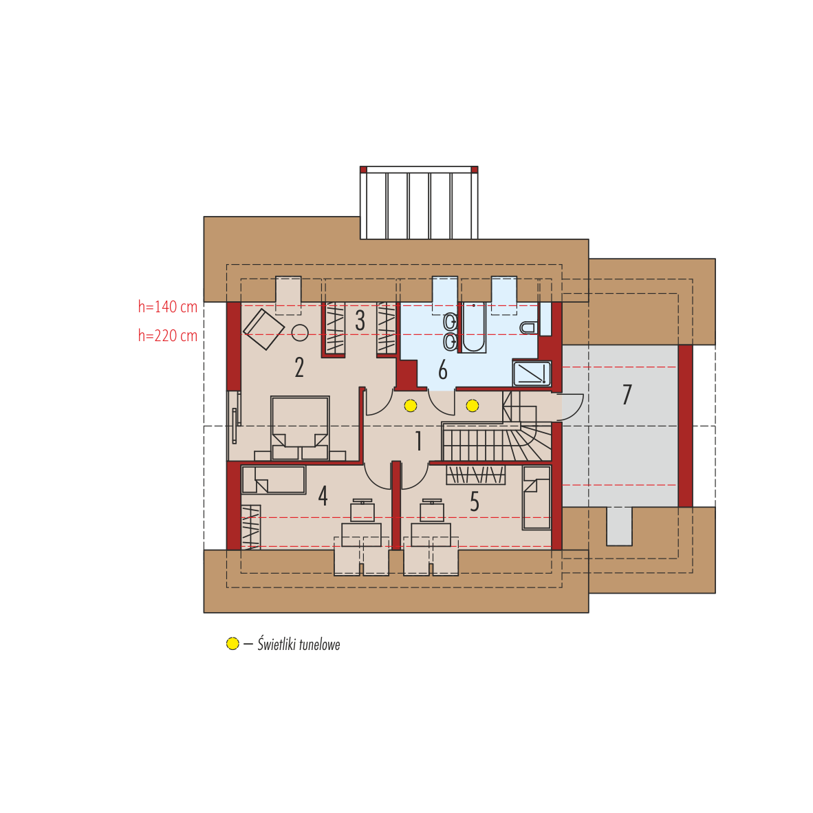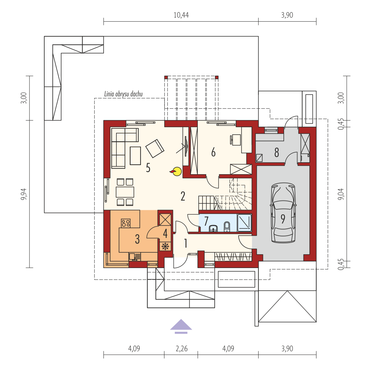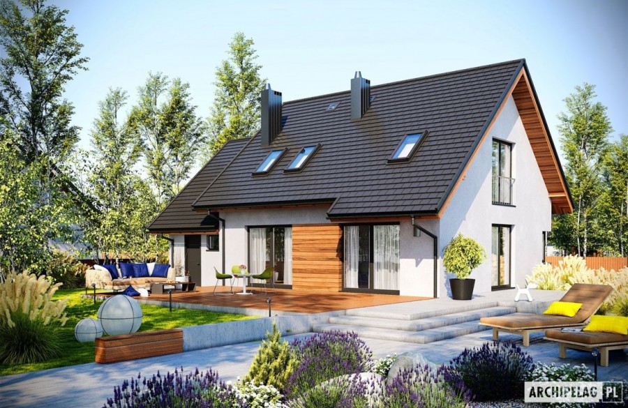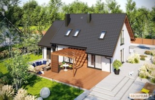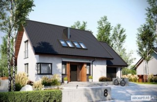 Charakterystyka: Dom parterowy z poddaszem użytkowym, niepodpiwniczony, z garażem jednostanowiskowymPrzeznaczenie: Dom dla 3-5-osobowej rodziny Technologia i konstrukcja:Ściany zewnętrzne: murowane, dwuwarstwowe, beton komórkowy firmy H+H, ocieplenie styropian Termo Organika 20 cmŚciany wewnętrzne: nośne i działowe murowane, beton komórkowy firmy H+H 24 cm i 12 cmStrop: międzypiętrowy gęstożebrowy TerivaDach: konstrukcja drewniana, ocieplenie wełna mineralna Isover 30 cm, dachówka ceramiczna płaska Bergamo firmy RöbenInne: schody wewnętrzne drewniane Rozwiązania instalacyjne:Ogrzewanie: kocioł gazowy kondensacyjny firmy Viessmann, rozprowadzenie ciepła: grzejniki firmy PurmoWentylacja: grawitacyjnaOZE: kolektory słoneczneWykończenie:Elewacje: tynk cienkowarstwowy mineralny w kolorze białym TO-PA001 z palety firmy Termo Organika, okładzina drewnianaStolarka: drewniana, PVC lub aluminiowa, żaluzje przeciwsłoneczne firmy BeClever, drzwi wejściowe i brama garażowa firmy HörmannOkna połaciowe: rozwiązania technologiczne firmy VELUX, świetliki dachowe firmy VELUX Pobierz ekspercki poradnik VELUX i dowiedz się jak wybrać okna dachoweOtoczenie: kostka betonowa i płyty tarasowe firmy Libet, system tarasowy ProDeck - deska kompozytowa Terra w kolorze orzech Wersje - zapytaj o dostępność:- Mini 8 G2 – wersja z garażem dwustanowiskowym- Mini 8 w. II – główna bryła z kalenicą prostopadłą do drogi, podobny układ funkcjonalny, inne wykończenie elewacji, z garażem jedno- lub dwustanowiskowym- odbicie lustrzane do każdej wersjiIstnieje techniczna możliwość:- podpiwniczenia budynku- zbliźniaczenia lub wykonania domu dwulokalowego- wykonania budynku w technologii szkieletowej Wariant działki dla wersji domu z garażem dwustanowiskowym: