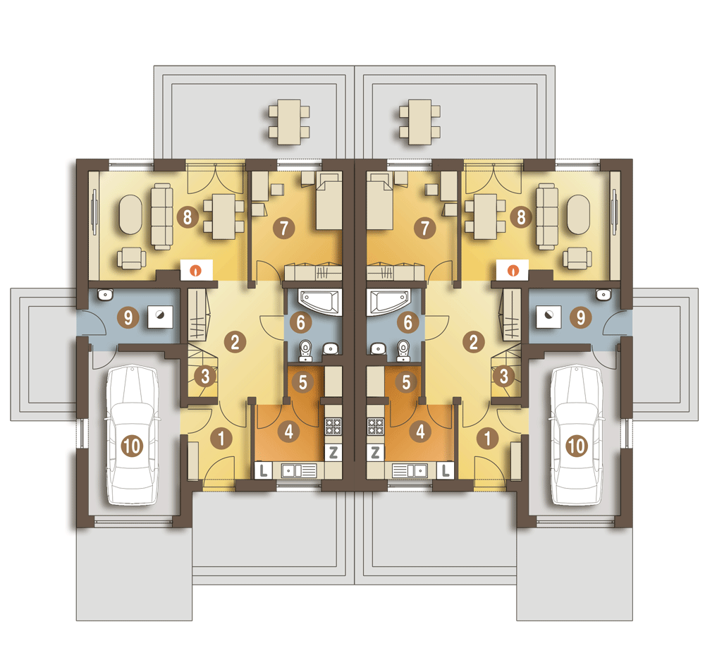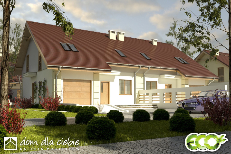 (Uwaga: projekty typu bliźniak oferujemy jako domy dwulokalowe, projekt można zamówić również w zabudowie bliźniaczej) Miła II A-BL2 to budynek - połączenie dwóch segmentów ścianami szczytowymi od strony garażu. Poniższy opis odnosi się do jednego segmentu. Projekt domu Miła II to propozycja do 4-5 osobowej rodziny. Na parterze lokalizowano pokój gościnny, salon z kuchnia i jadalnią, komunikację, łazienkę oraz pomieszczenia pomocnicze jak garaż i kotłownia. Na piętrze mamy trzy wygodne sypialnię, przedpokój, łazienkę i garderobę. Miła II to niewielki domek o atrakcyjnym, tradycyjnym wyglądzie zewnętrznym.