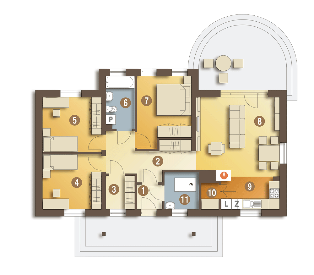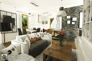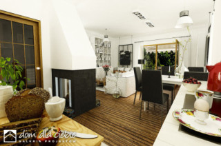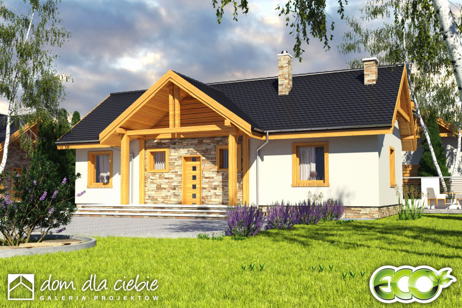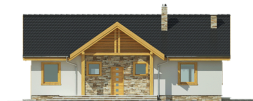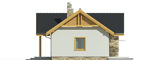 Projekt domu jednorodzinnego Modraszka jest mały i optymalny. Jest to klasyczny parterowy dom jednorodzinny zaprojektowano na głównym rzucie prostokąta z dachem dwuspadowym. Funkcja mieszkalna przewidziana została dla 4-ro osobowej rodziny. Powierzchnia mieszkalna obejmuje trzy pokoje, salon z otwartą kuchnią i spiżarnią, garderobę, łazienkę i wygodny hol rozprowadzający. Pomieszczenie garderoby, w razie zapotrzebowania, można zamienić na dodatkową łazienkę na etapie adaptacji. Kotłownię przewiduje się na paliwo stałe - jest ona dostępna z wiatrołapu. W dziennej strefie zaprojektowano foremny salon z kominkiem i wyjściem na część tarasową.fundamenty: BETONOWE ściany zewnętrzne: PUSTAK CERAM. POROTHERM+STYROPIAN TERMO ORGANIKA ściany wewnętrzne: POROTHERM/ CEGŁ.DZIURAWKA rodzaj stropu: TERIVA elewacje: TYNK STRUKTURALNY pokrycie dachu: DACHÓWKA CEM. lub CER.
