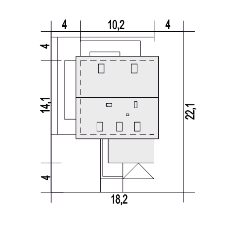 Charakterystyka: Dom parterowy z poddaszem użytkowym, niepodpiwniczony Przeznaczenie: Dom dla 3-4 osobowej rodziny Technologia i konstrukcja: Ściany zewnętrzne: murowane, Strop: gęstożebrowy Dach: konstrukcja drewniana, dachówka ceramiczna Röben Rozwiązania instalacyjne: Ogrzewanie: kocioł gazowy, rozprowadzenie ciepła: grzejniki Wentylacja: grawitacyjna Wykończenie: Elewacje: tynk mineralny oraz okładzina drewniana, cokół kamienny lub pokryty tynkiem akrylowym Stolarka: drewniana lub PCV Dostępne wersje: - odbicie lustrzane