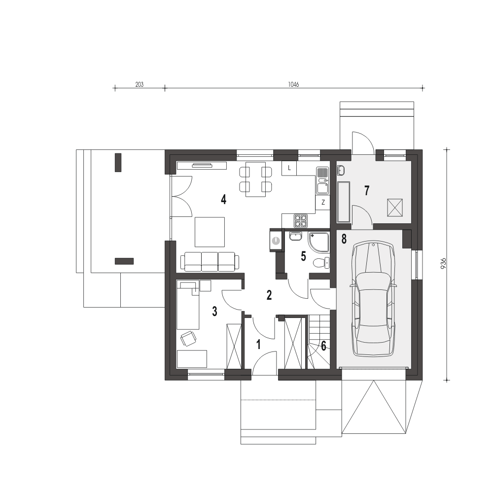 Monika to nieduży i prosty w budowie dom dla 4-osobowej rodziny. Posiada wbudowany garaż i kotłownię na paliwo stałe.fundamenty: BETONOWE ściany zewnętrzne: POROTHERM+STYROPIAN TERMO ORGANIKA rodzaj stropu: TERIVA I elewacje: TYNK STRUKTURALNY pokrycie dachu: DACHÓWKA CERAMICZNA