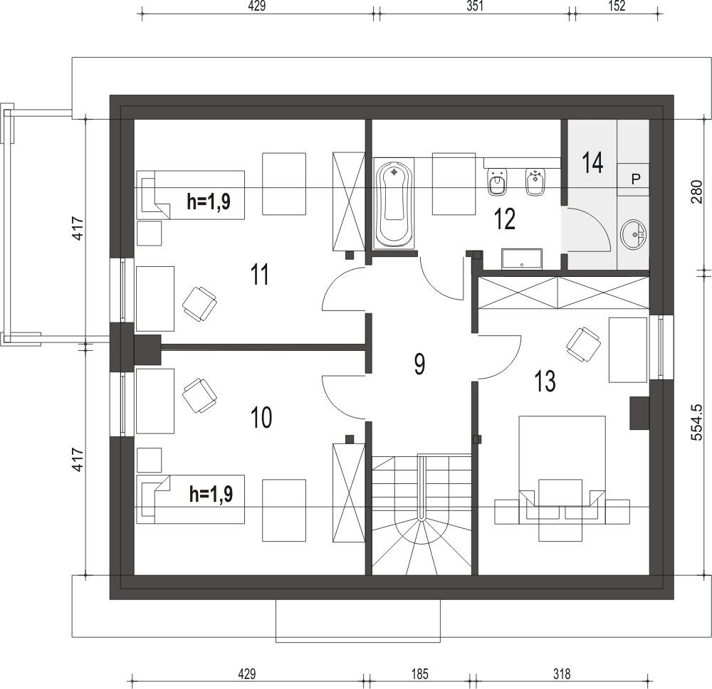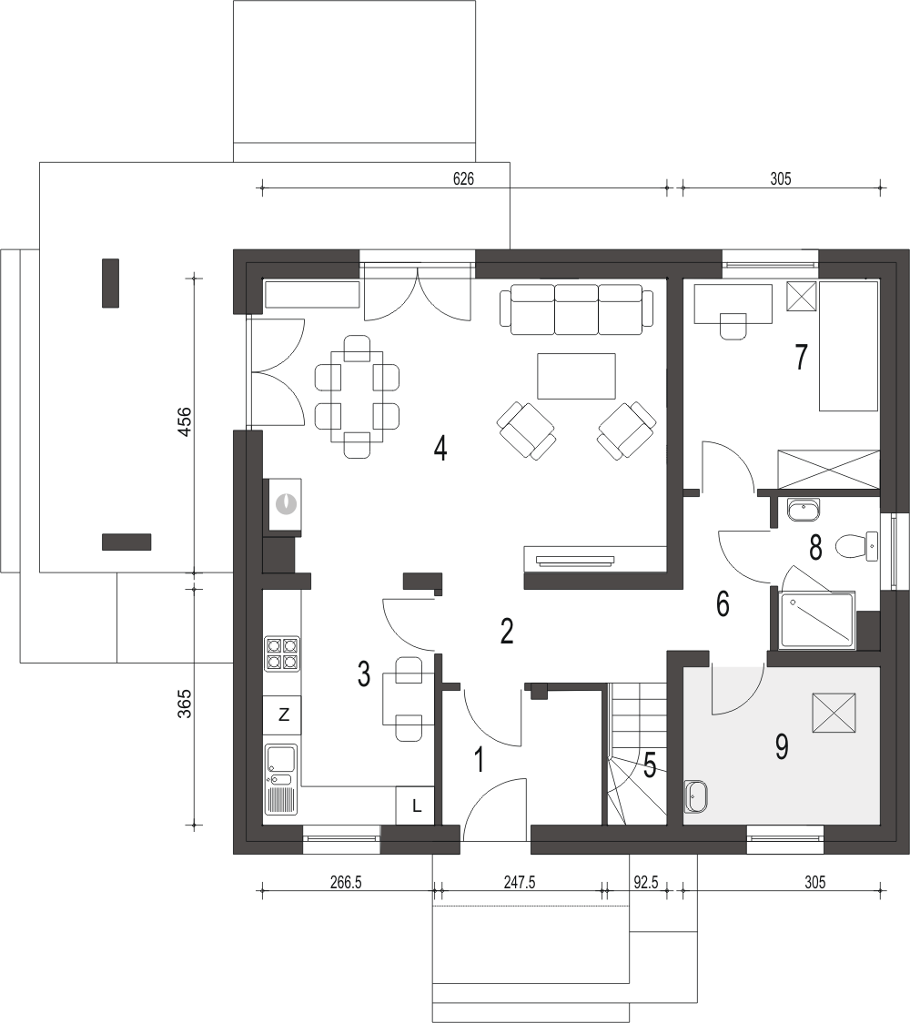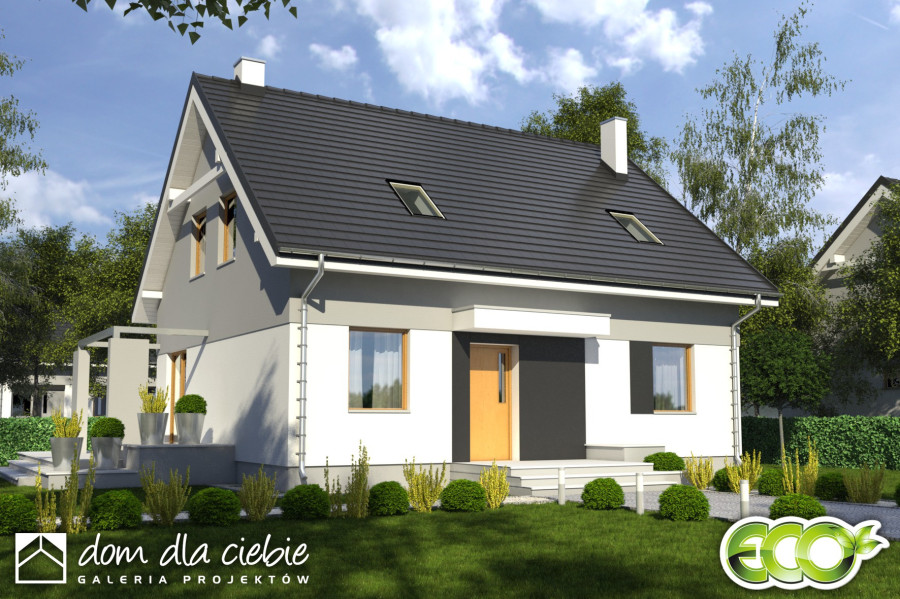 Projekt Monika II to prosty konstrukcyjnie, atrakcyjny, niewielki dom z poddaszem użytkowym i wiatą garażową dla 4-osobowej rodziny.